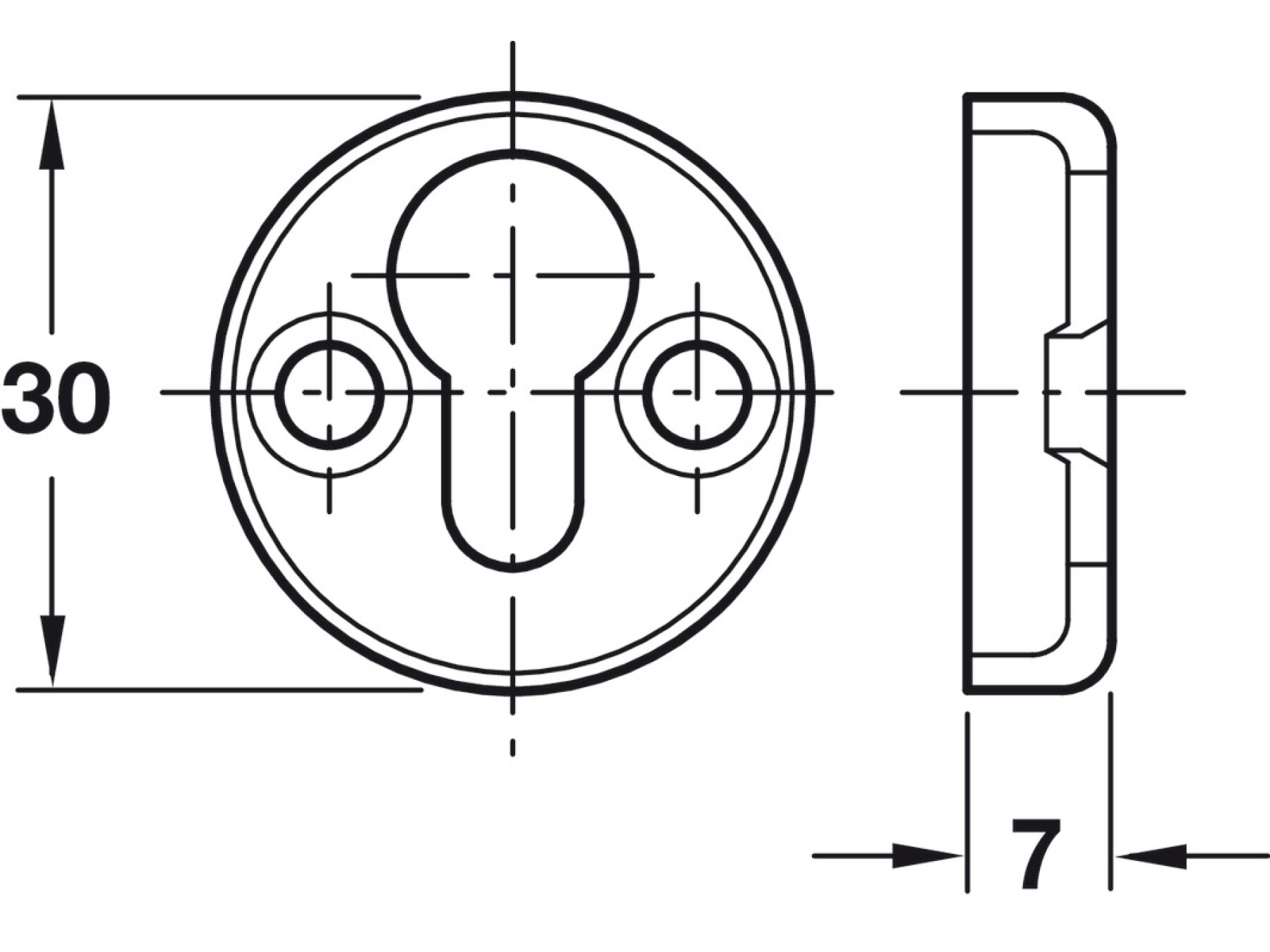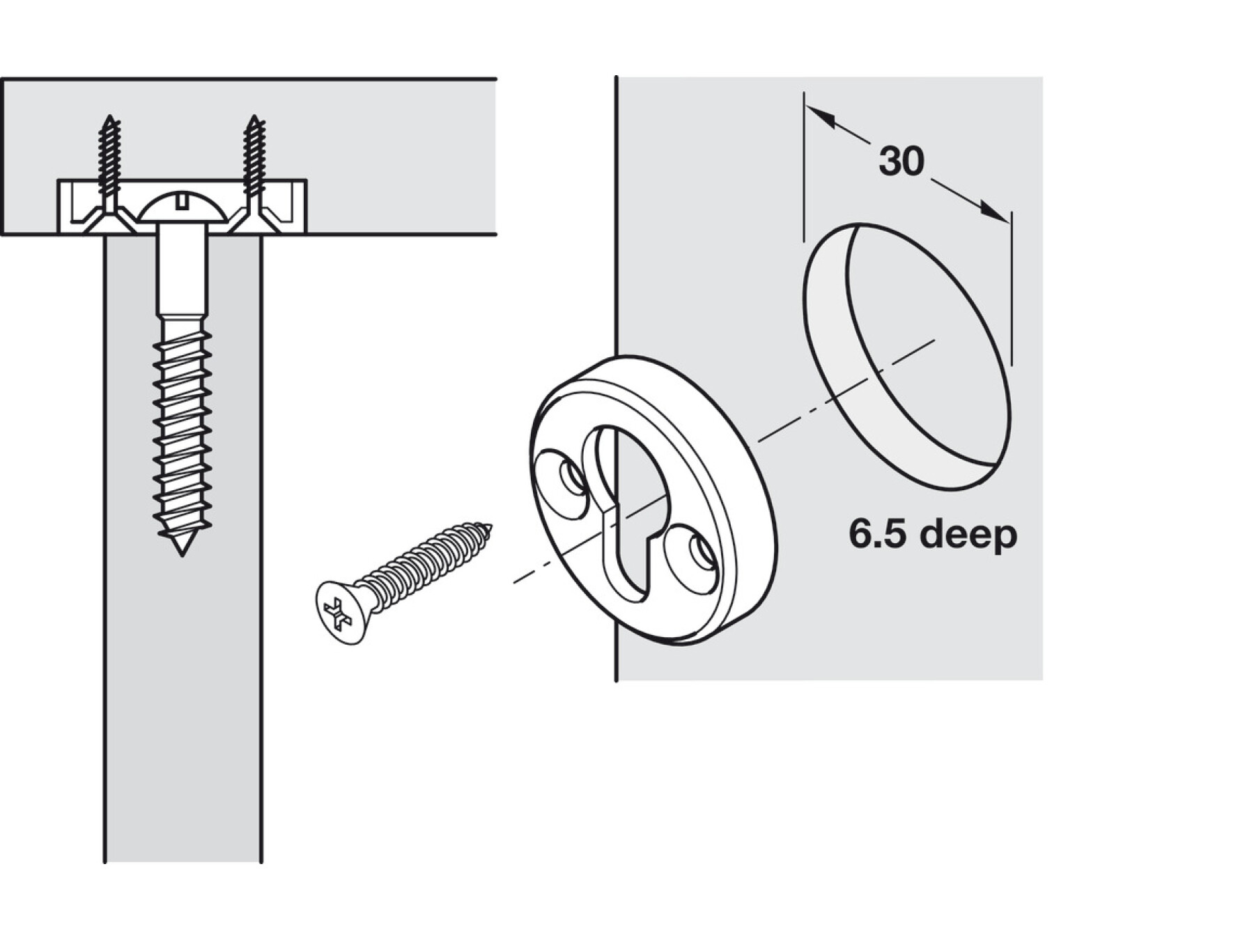 For mounting in drilled holes and screw fixing, for hooking onto Pan head chipboard screws Ø 5 mm
