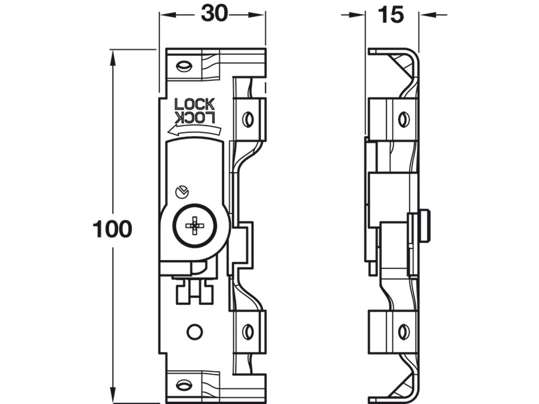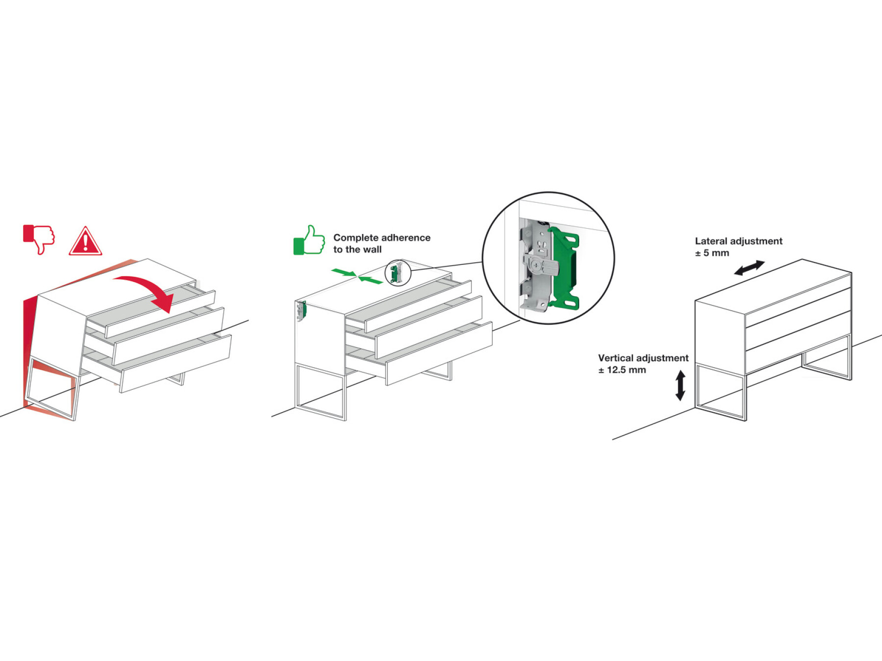 For cabinets with back board; for screw fixing to the cabinet edges