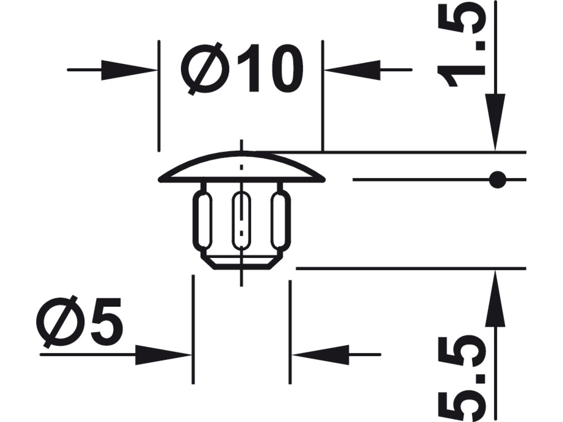 For Ø 5 x min. 5.5 mm holesRibbed body ensures secure grip when installed