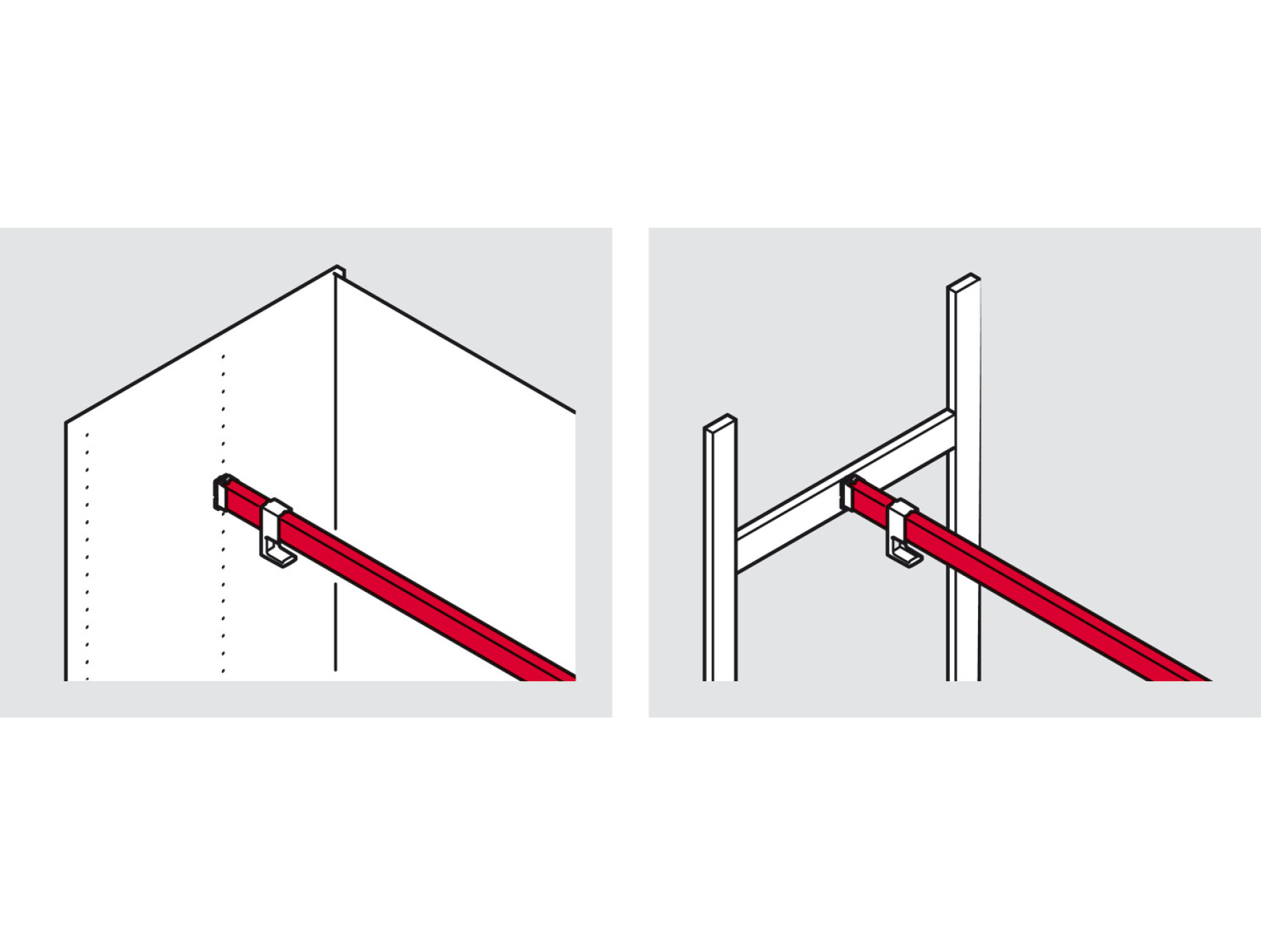 Wardrobe rail length = internal cabinet width – 26 mm