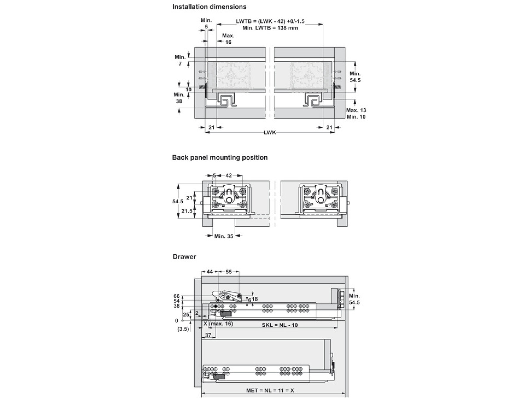 For use with pull out shelves and wooden drawers with Grass Dynapro sides