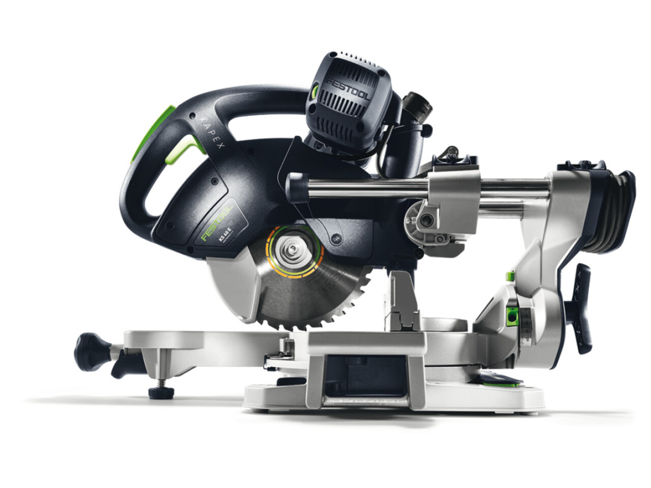 For cutting boards and panels with sizes of up to 305 x 60 mm to length, trimming strips, profiles and timber at thickness if up to 60 mm and adjusting skirting boards and cover strips to precision angles quickly and precisely using the bevel.
