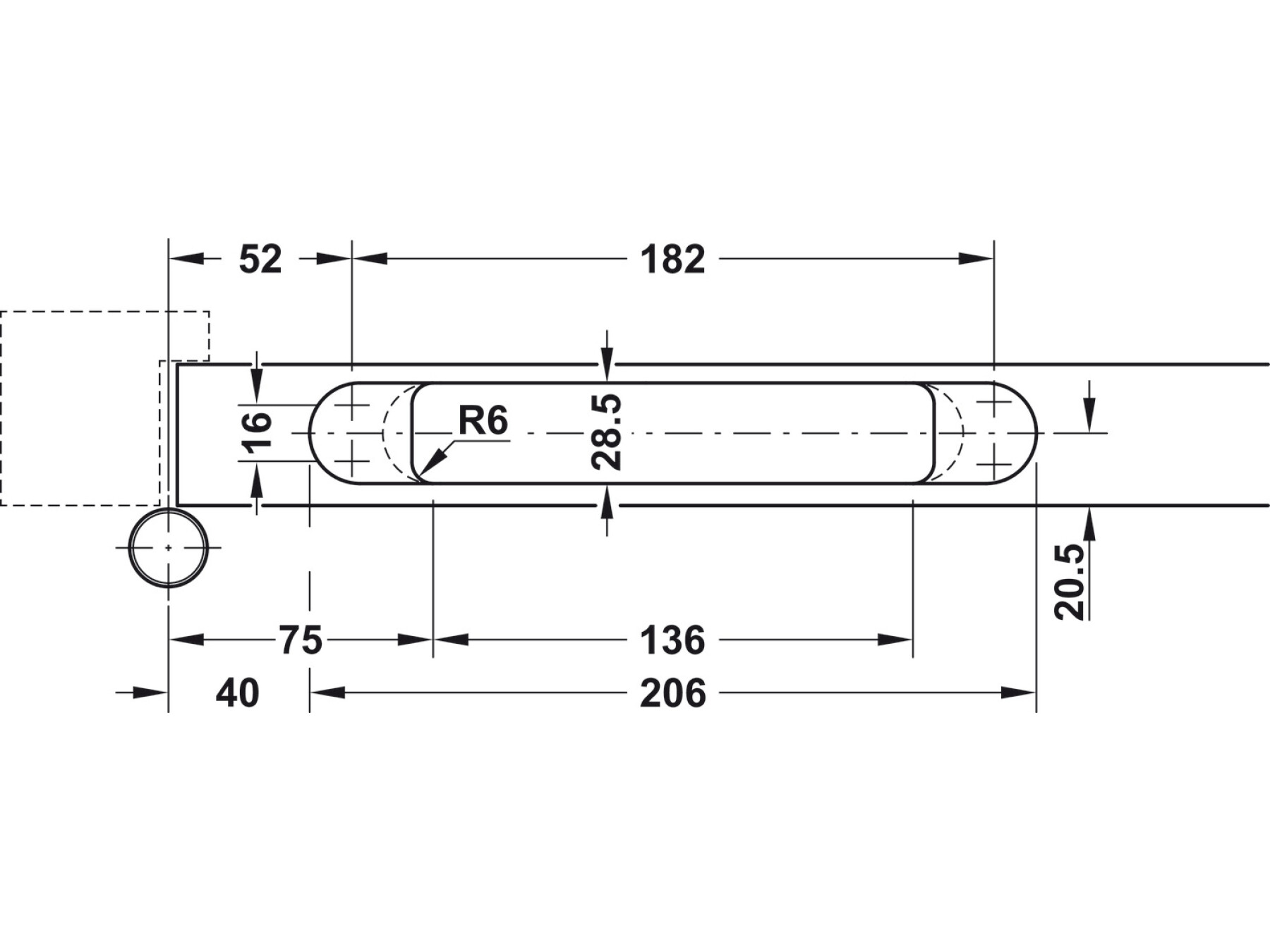 Rebate gap approx. 5 mm, clearance around the arms