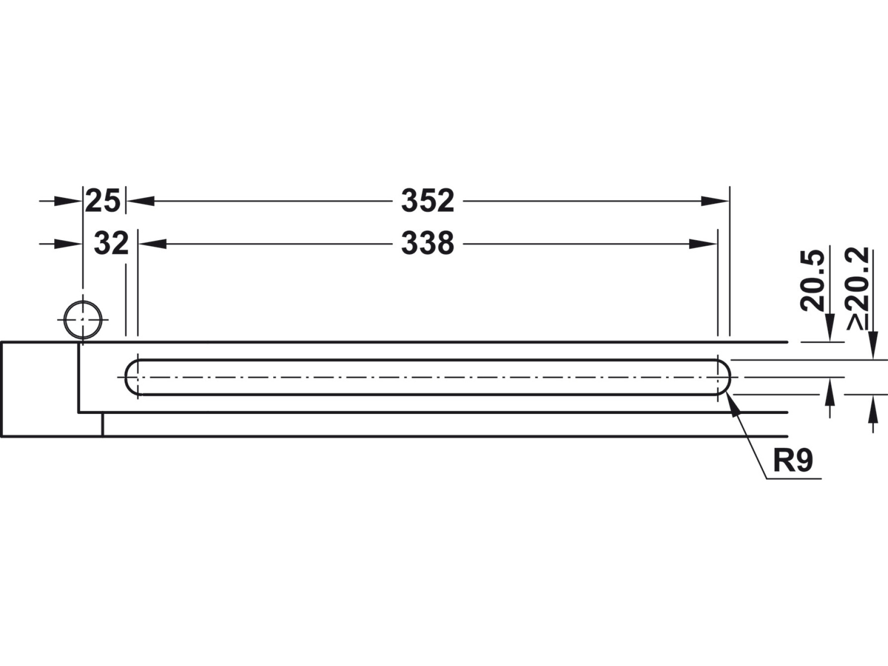 1 guide rail with glide and end buffer