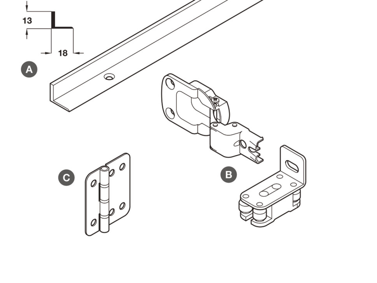 4 door set consists of 2 x 1.0 m lengths of top/bottom track, 4 x Top/bottom guide, 6 x Folding door hinges and fixings