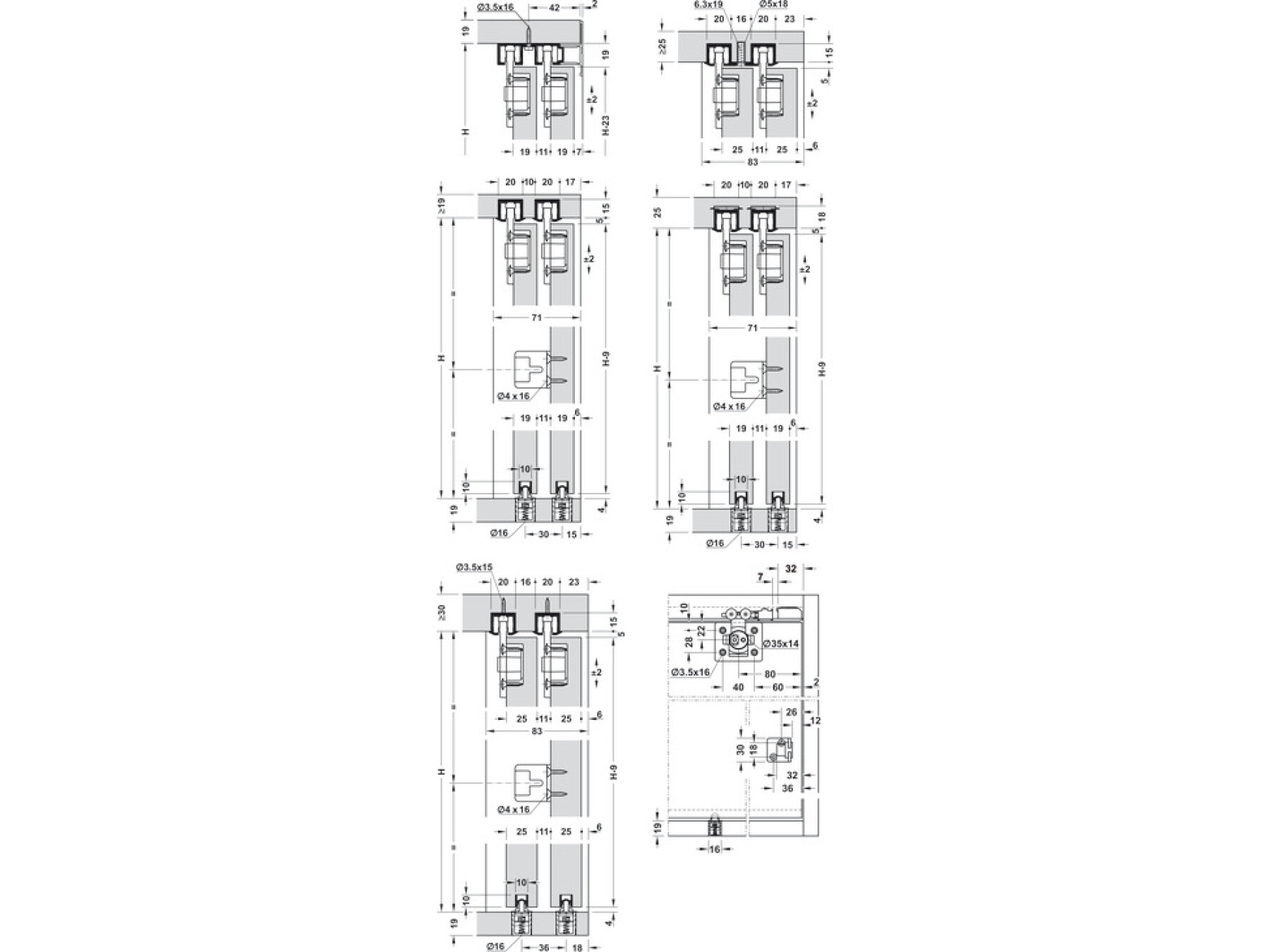 Quality furniture where bi-passing sliding doors are requiredRecess mounted back fixing housings (36 H)Hawa-Clipo... Read More