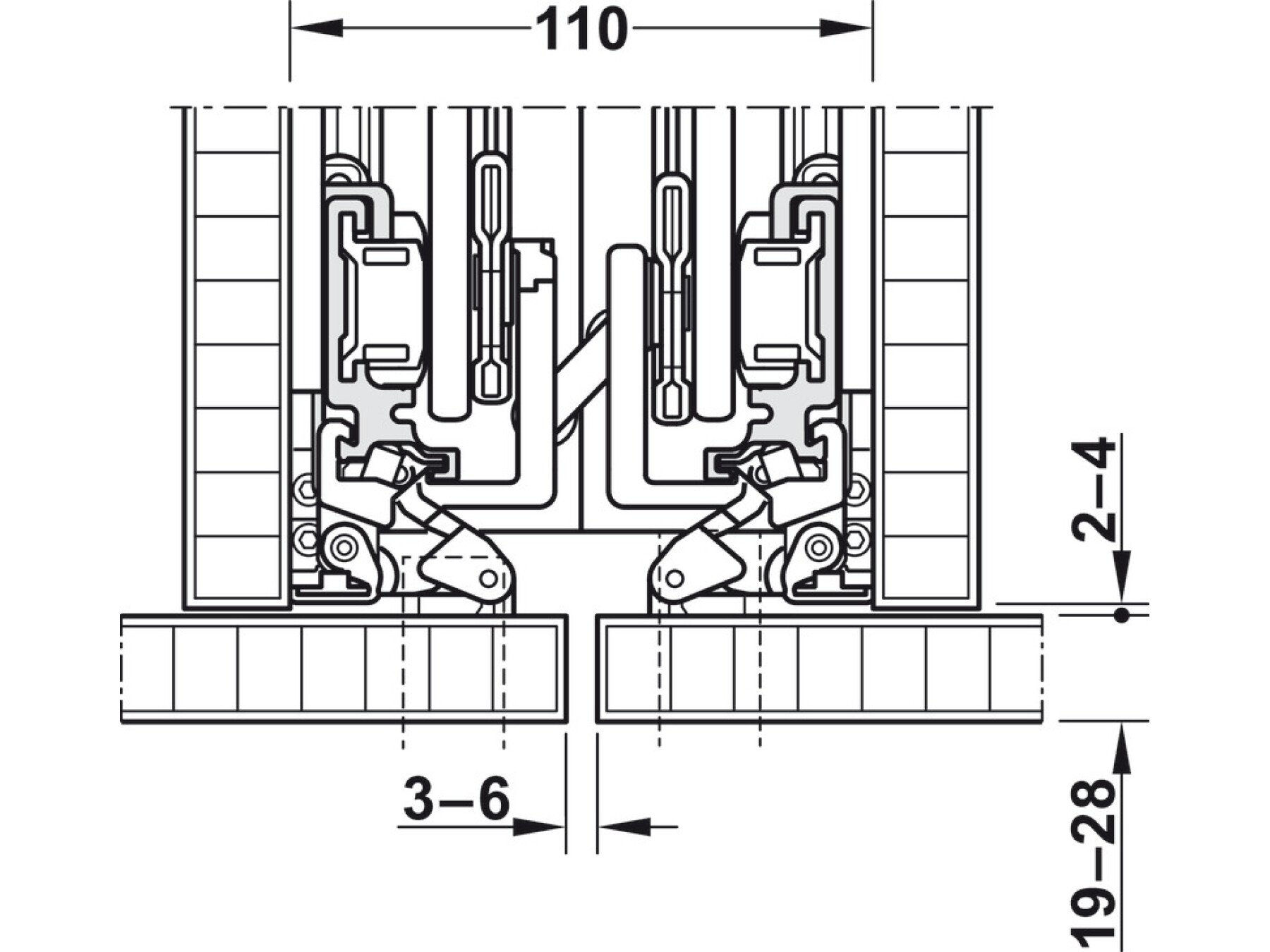 HAWA-Concepta fitting sets come with installation drawings, available seaparately on request (HAWA-Concepta 25/30 - Drawing reference 25737 and HAWA-Concepta 40/50 - Drawing reference 25738)
