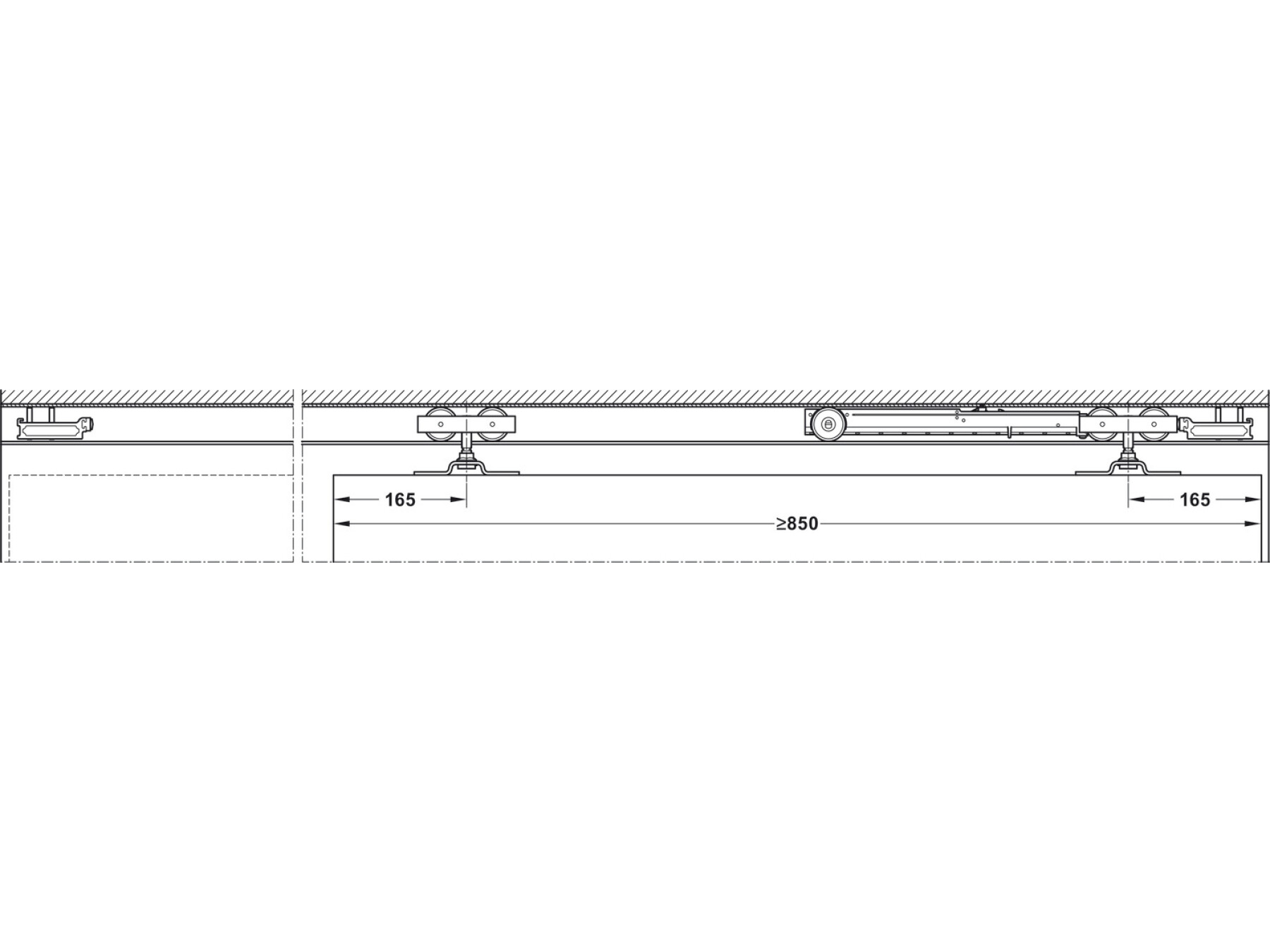 For installation in Hawa-Junior 120 top track, screw fixes to carriage of Junior 120 trolley hanger (not included)
