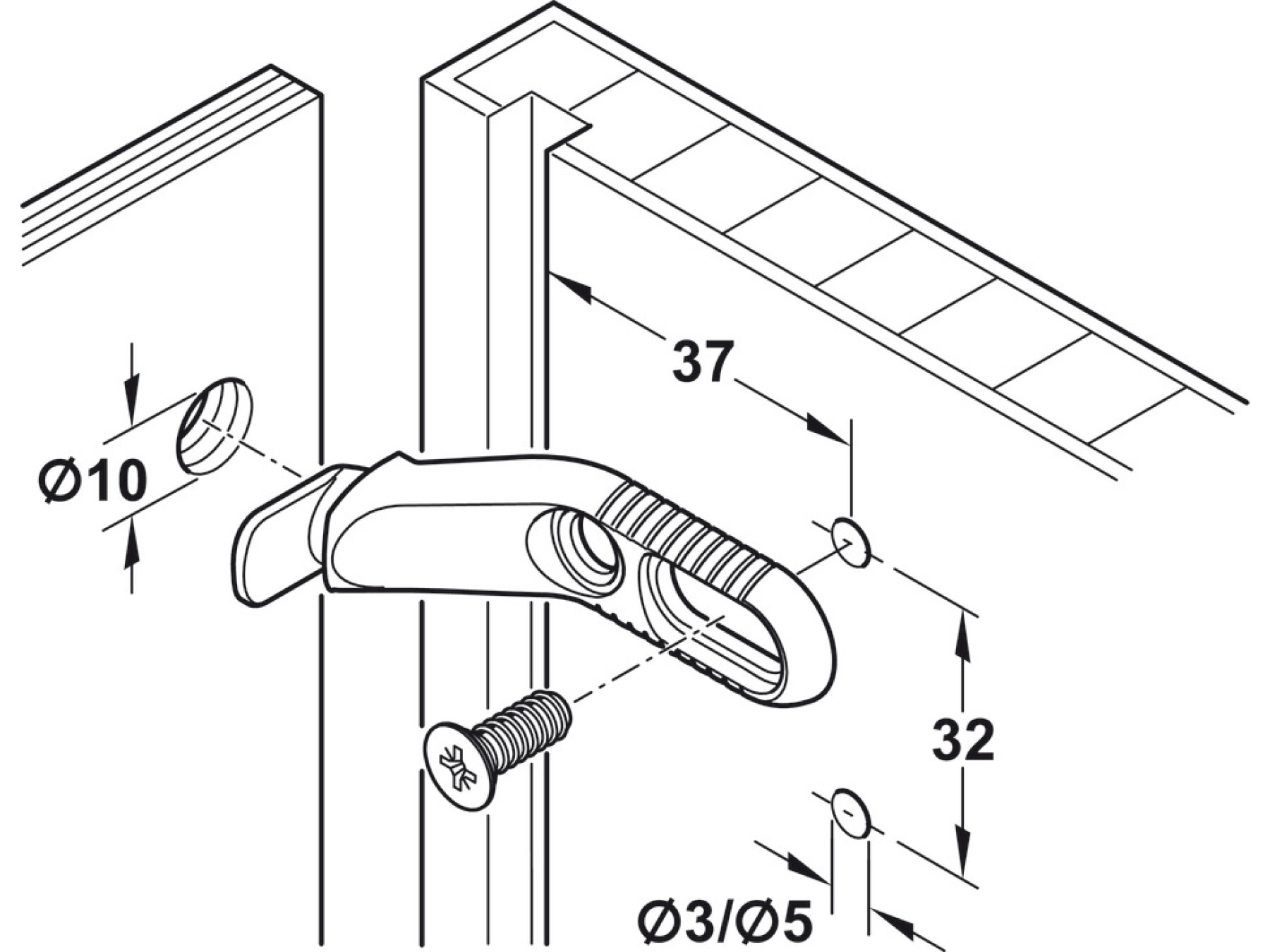 Can additionally be secured with chipboard screw Ø 3.5 mm