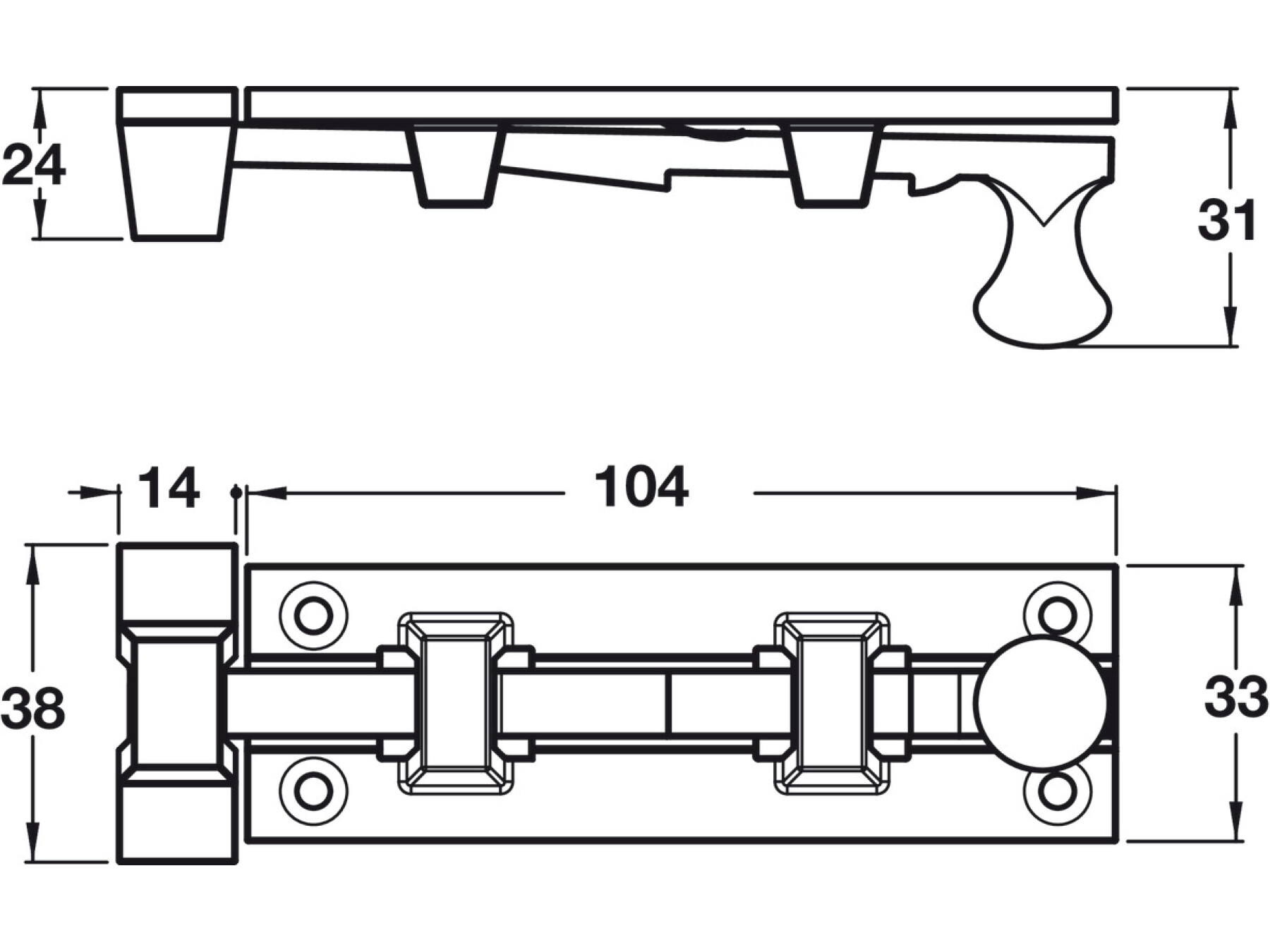 Knob Slide Act Bolt 100mm Straight BA