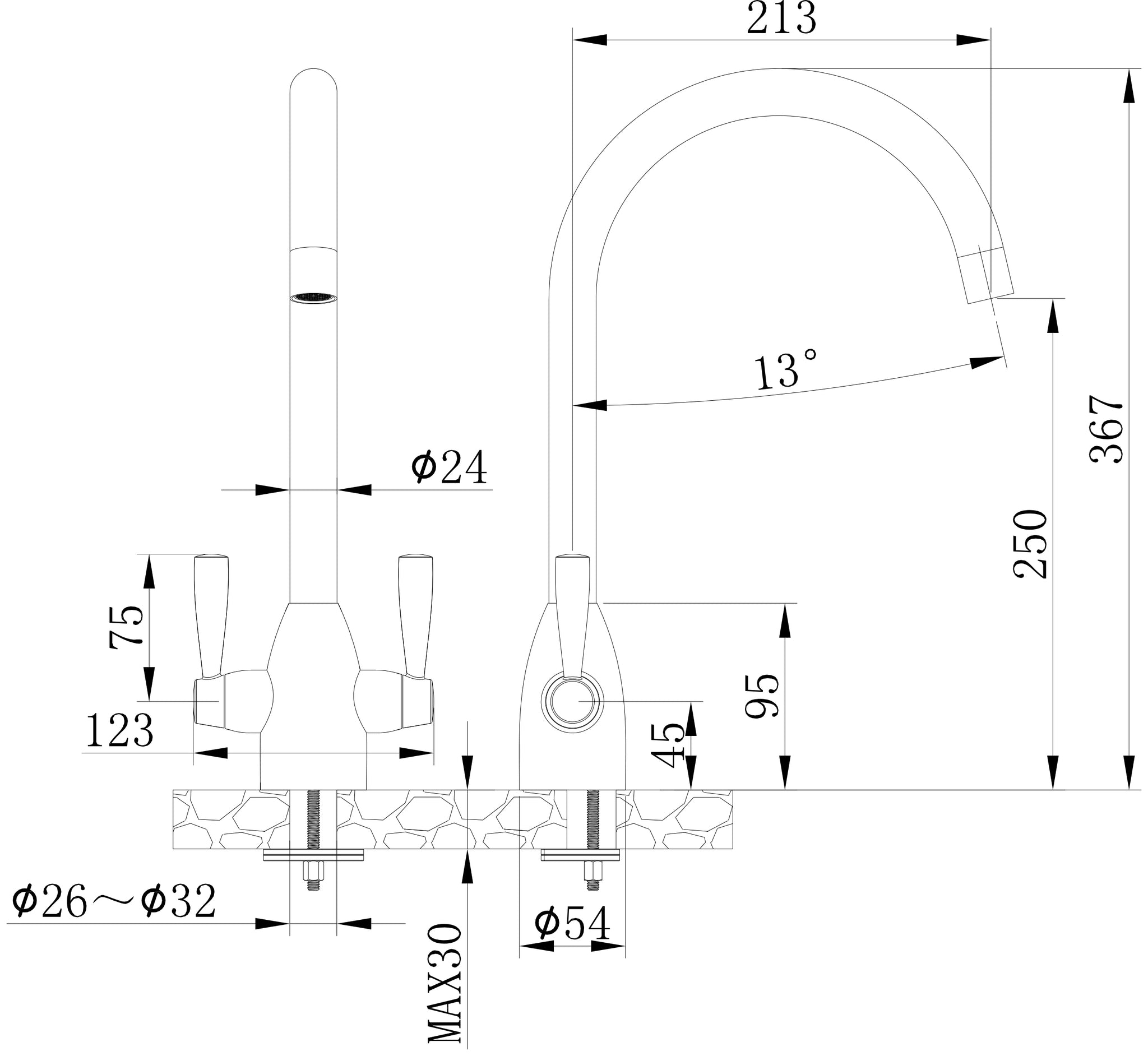 - Twin Lever Swan Neck Sink Mixer (Chrome)