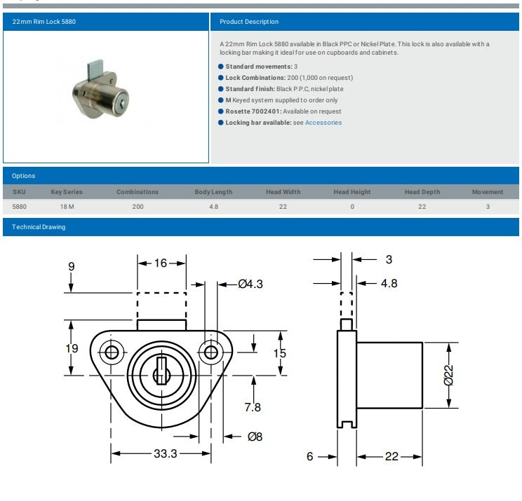 A 22 mm Rim Lock 5880 in Nickel Plate.