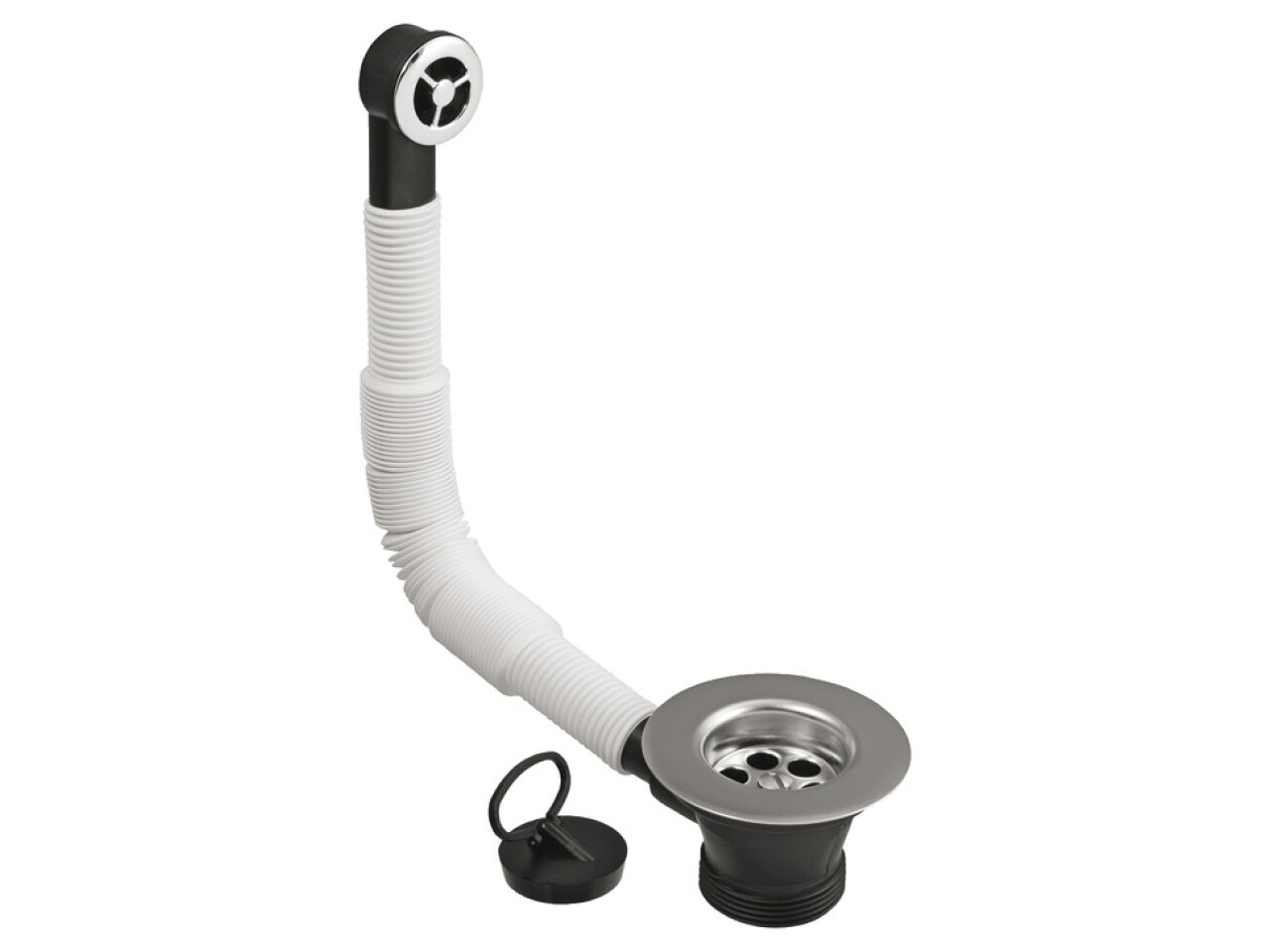 Version Flexible overflow pipe85 mm stainless steel flangeChrome plated plastic overflow coverBlack plug included