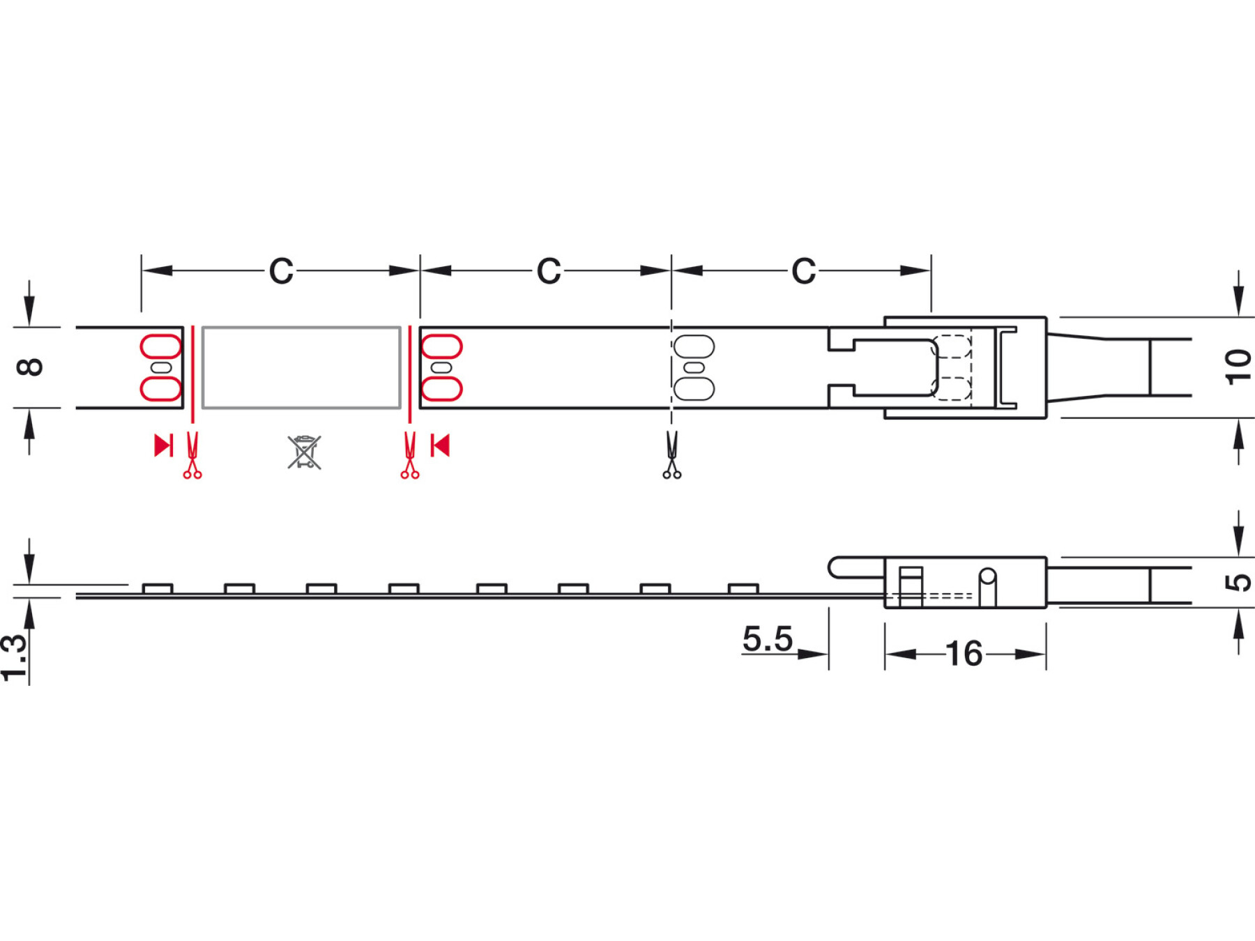 1x 833.76.316 or 833.76.319 24V LED 3042 strip light