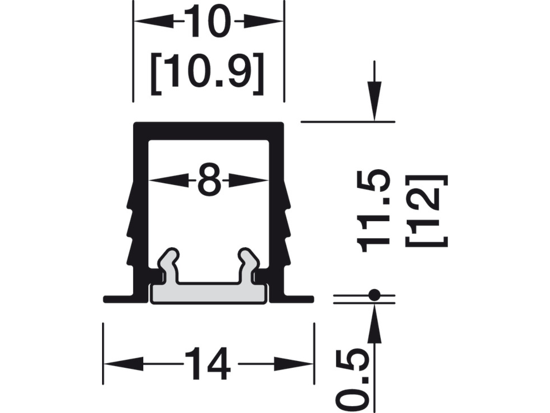 Profile 1104 usable for LED strip lights up to max. 5 mm width