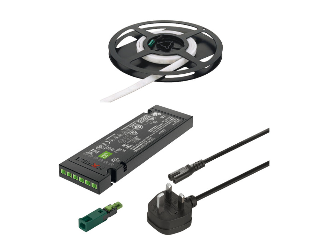 Maximum strip length (visual) describes a strip section with a visually imperceptible drop in luminous flux of max. 30%. Please note: A strip section with a new power supply that follows immediately is noticeably brighter. Max. wattage-dependent strip length on the driver, see technical data for LED strip lights
