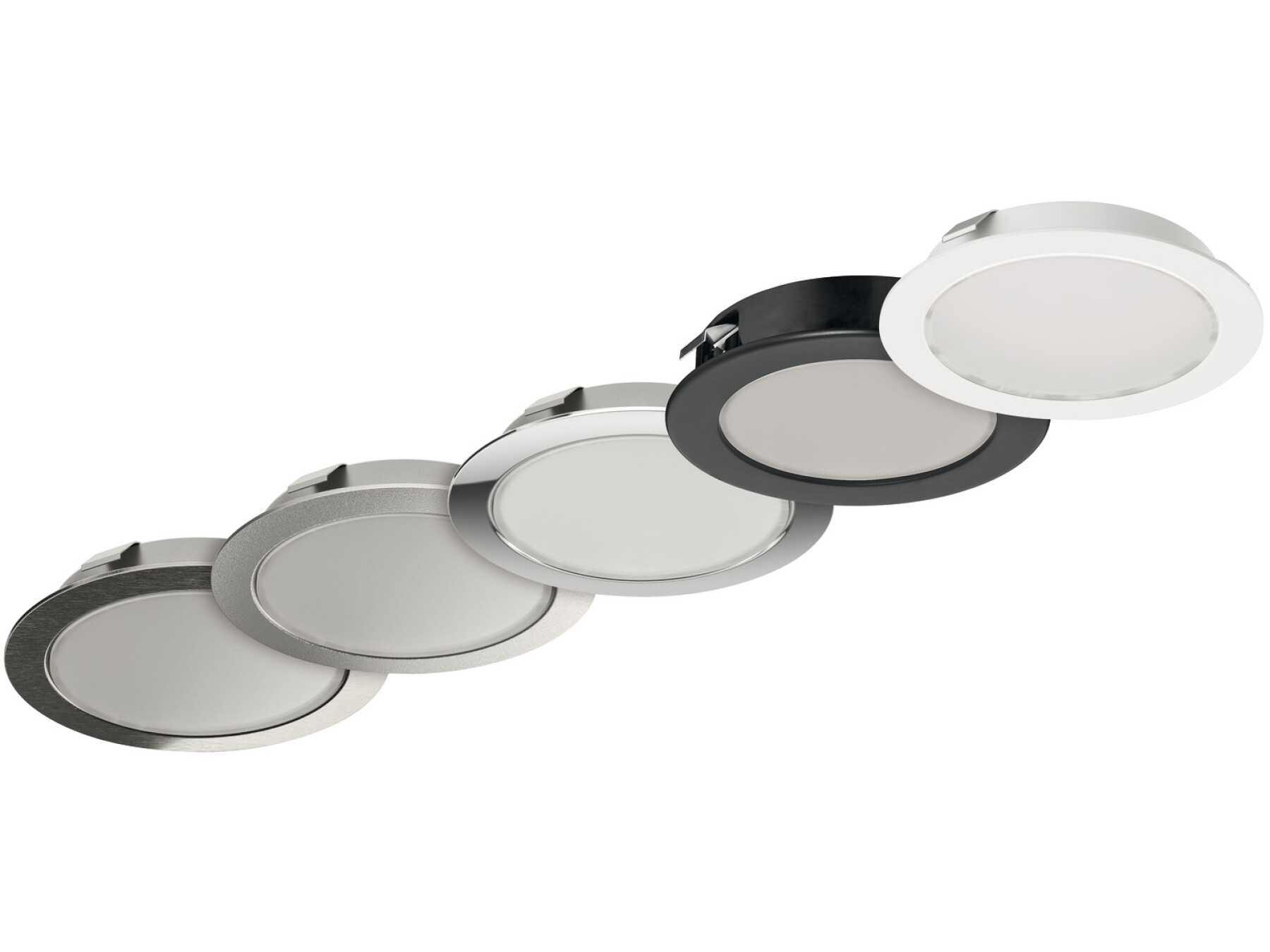The powerful LED 2047 with frosted real glass cover makes a wide range of applications possible in furniture. The housing components are exclusively made from steel, providing good service as ambient lighting for years. The different mounting