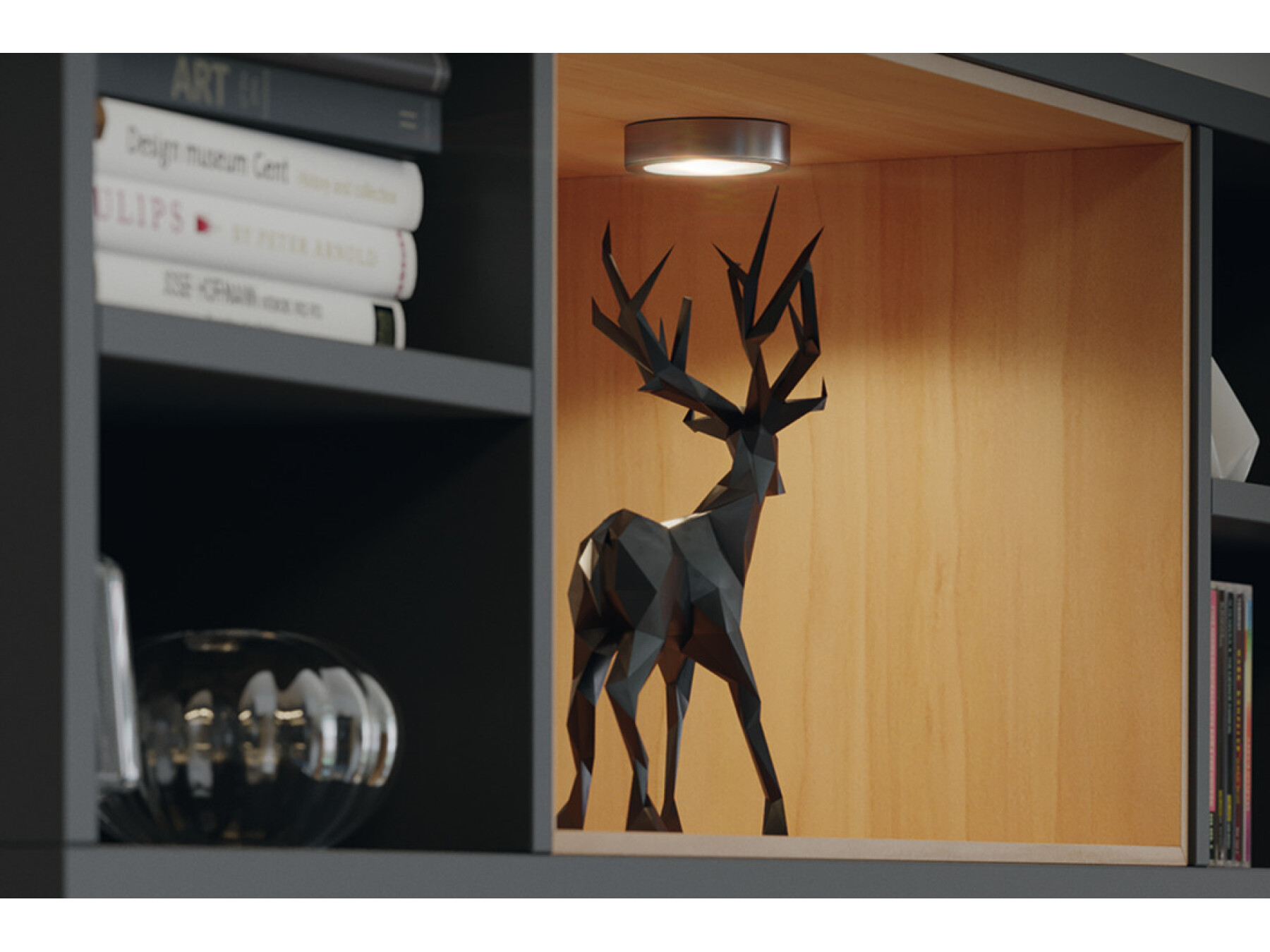 The powerful LED 2047 with frosted real glass cover makes a wide range of applications possible in furniture. The housing components are exclusively made from steel, providing good service as ambient lighting for years. The different mounting