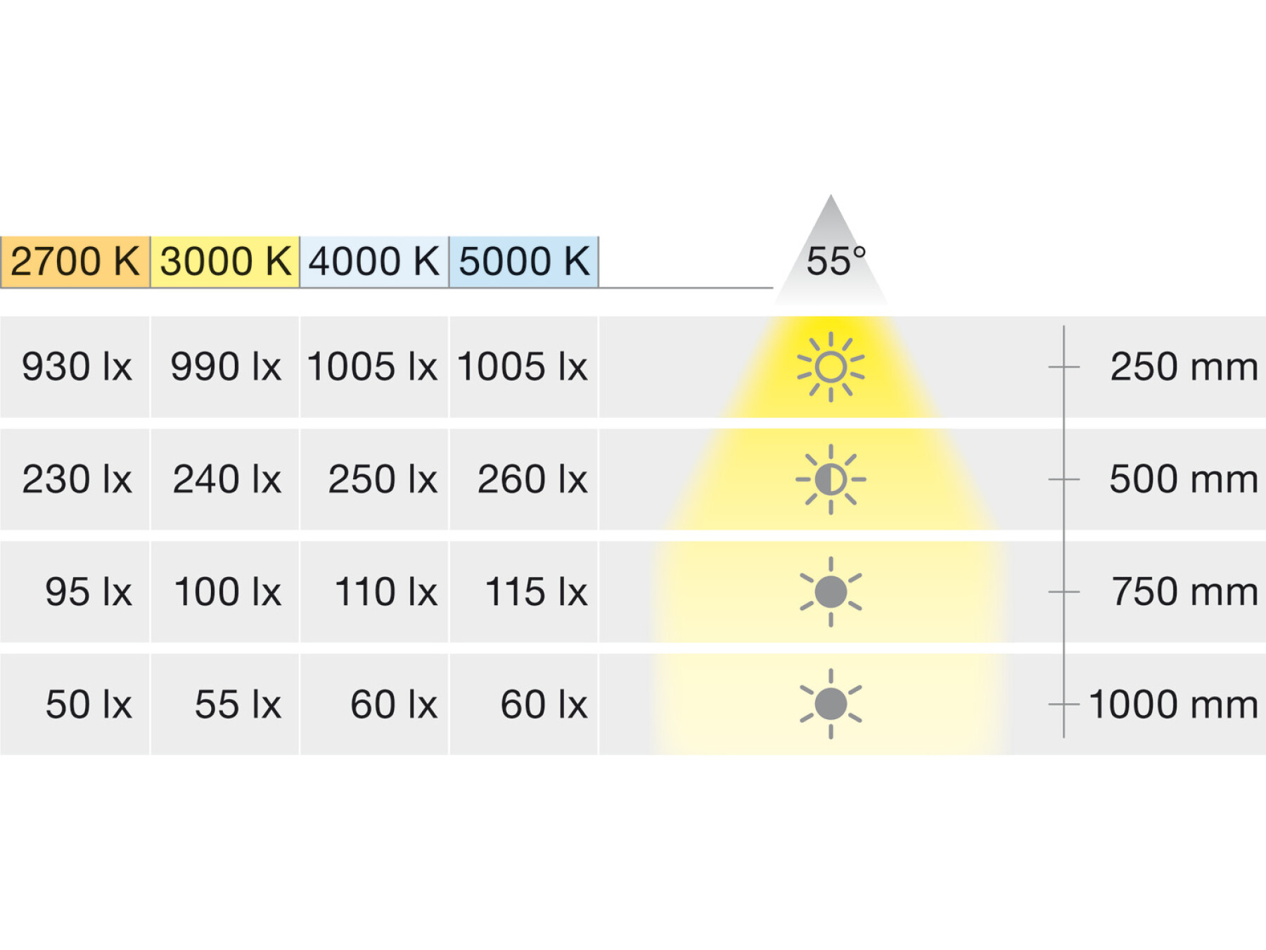 Degree of protection IP45 is reduced to IP20 when using housing for undermounted light.