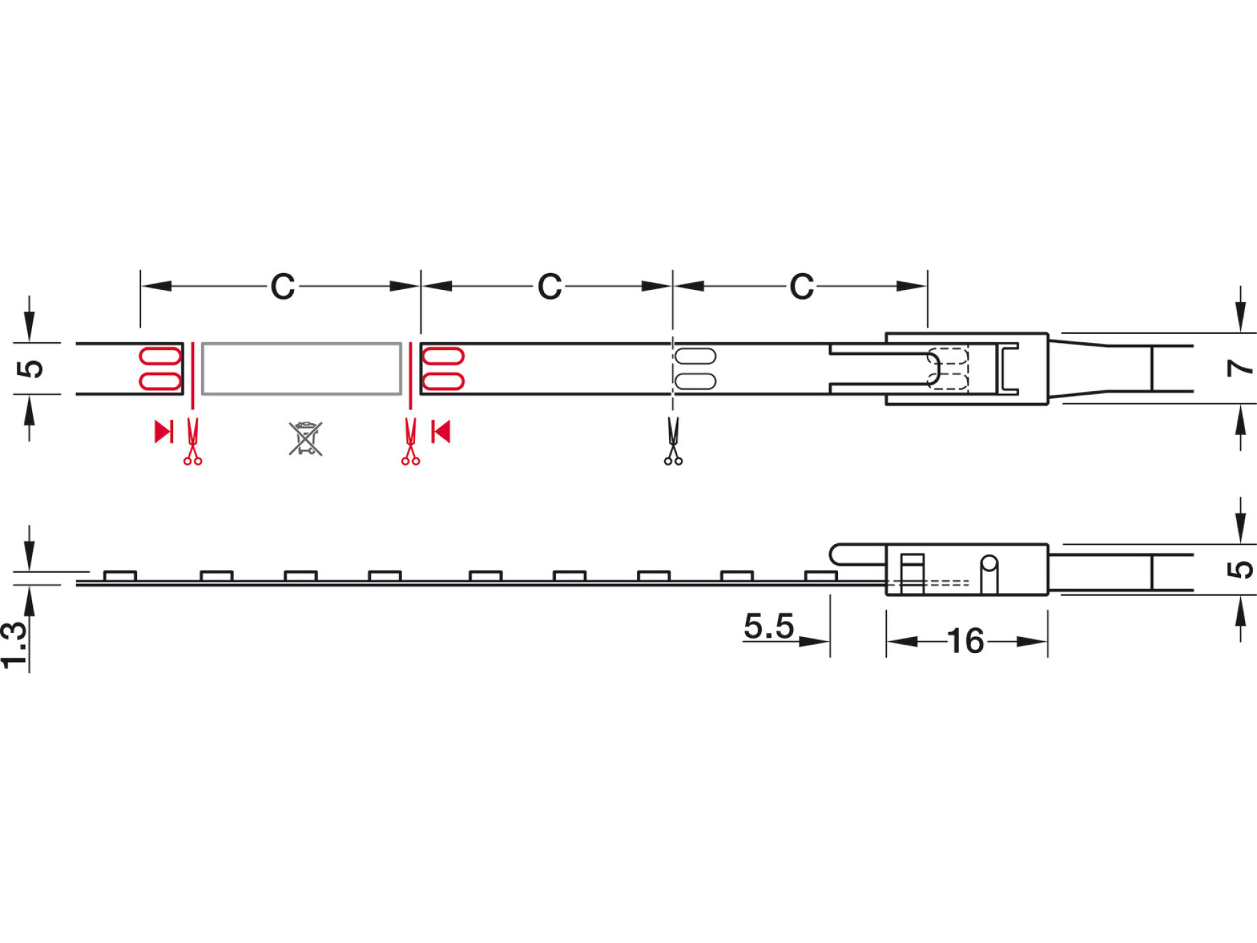 Maximum visual strip length applies for an imperceptible drop in luminous flux of max. 30%