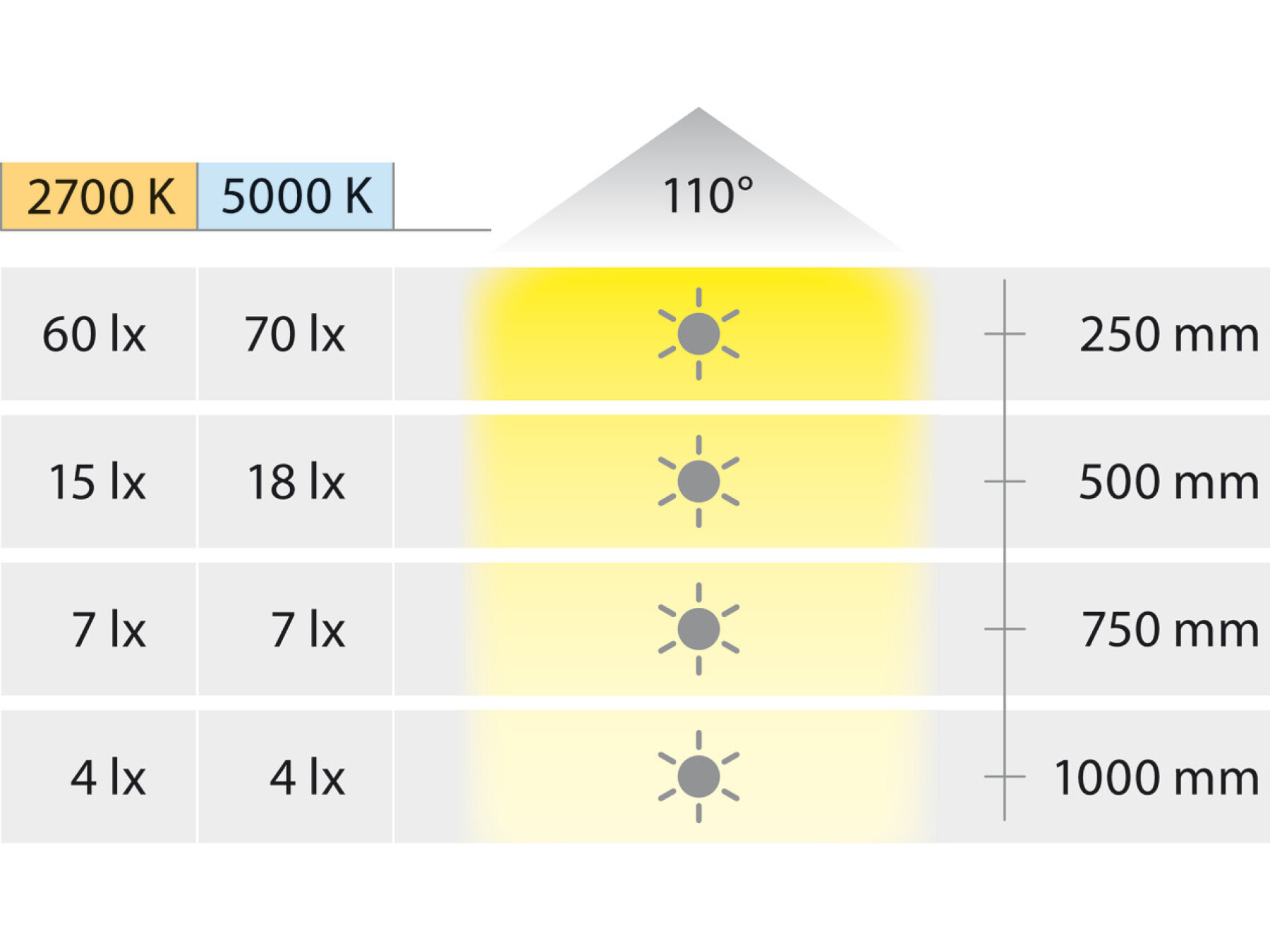 The values for wattage, luminous flux and luminous efficiency apply to a single light.