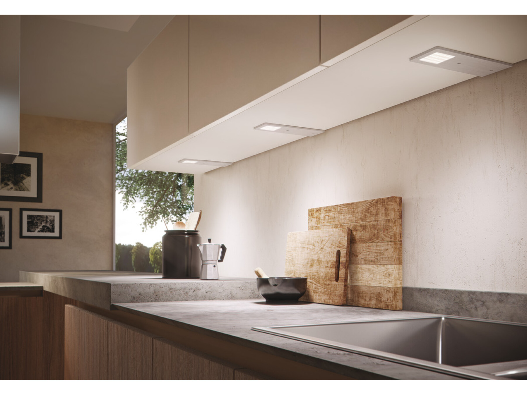 The Polar light is mounted in a super thin aluminium profile which means you have the aesthetic appearance of a recessed light but without the work