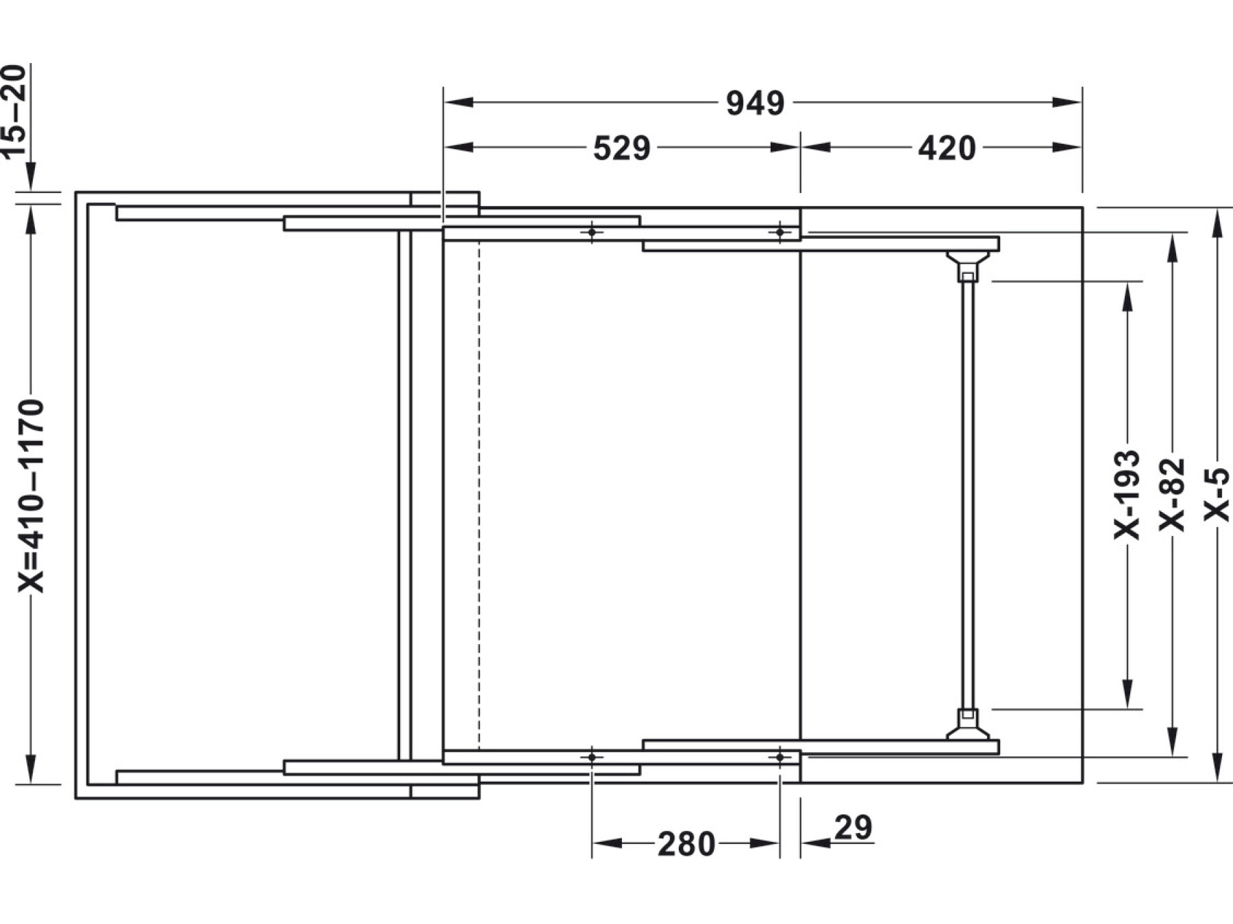 The system is designed to suit side thickness A 16 mm. The connecting profile B must be shortened by 1.5 mm on both sides when using 19 mm thick side panels