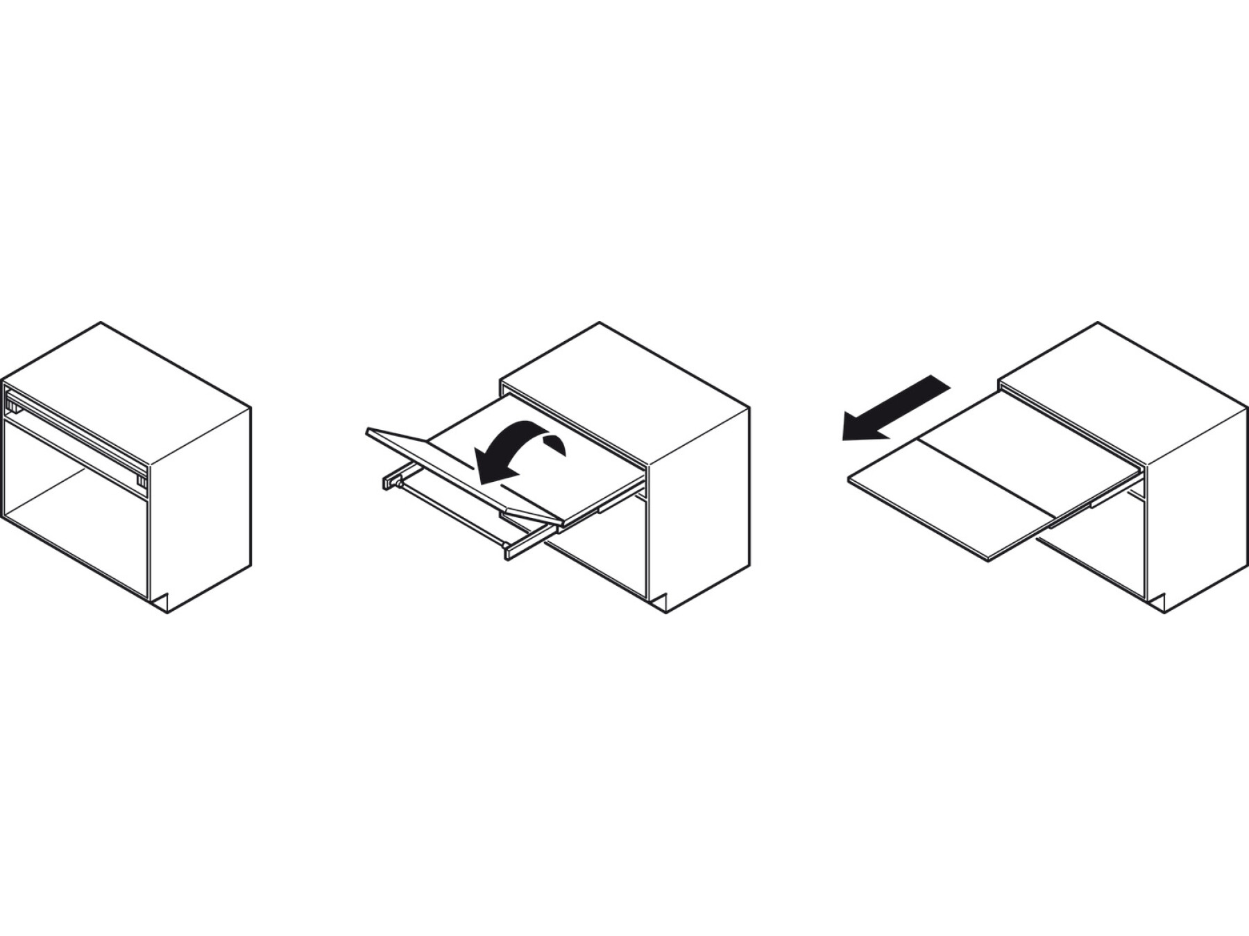 Table top not supplied. Please order hinges for drawer front panel and folding table hinges separately.