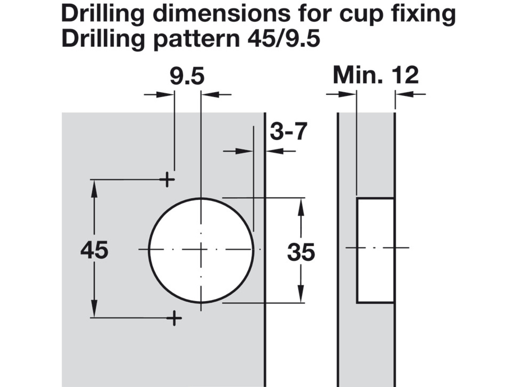 | Door thickness mm | Distance to cup E mm | ||||