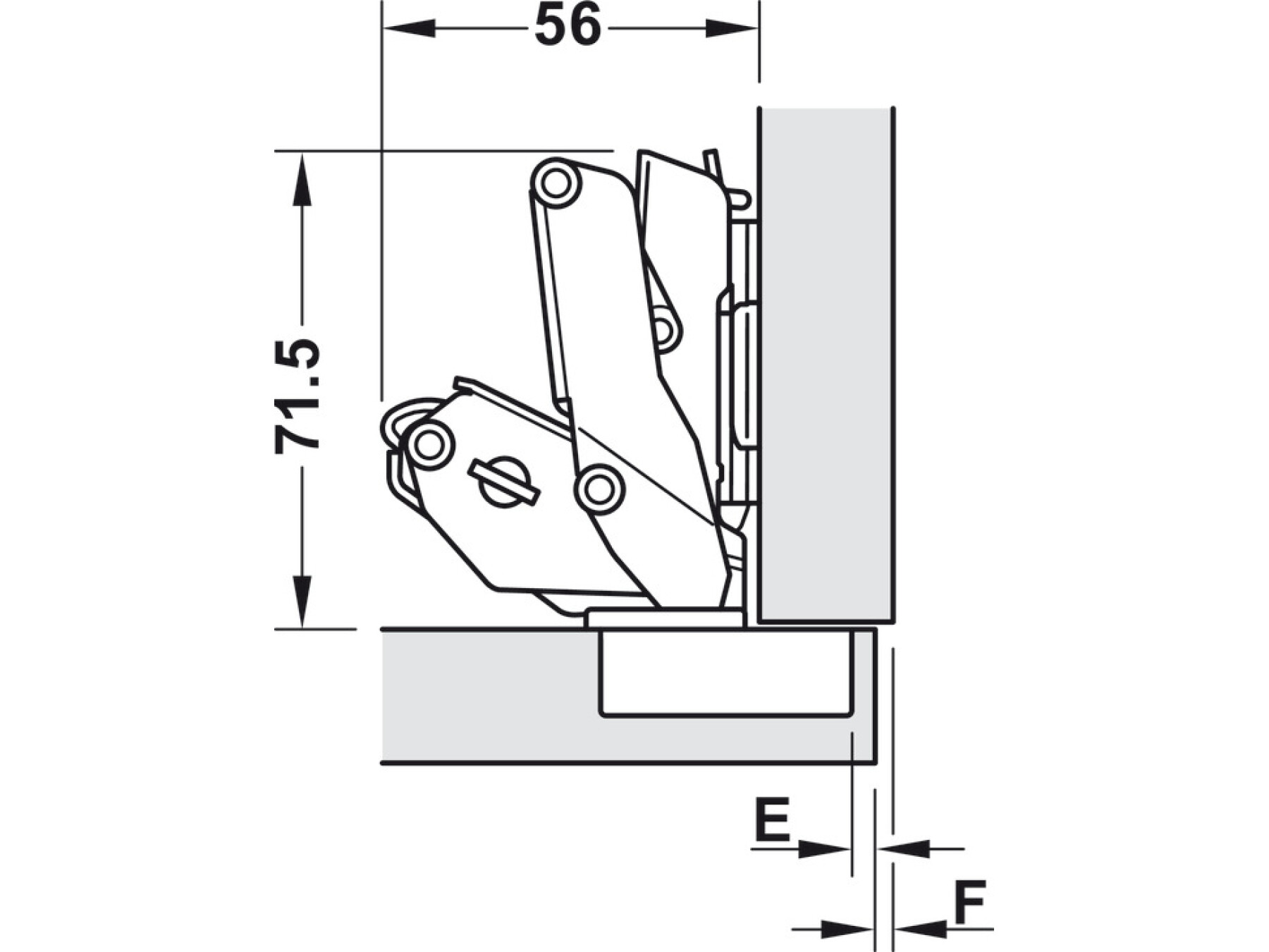 | Door thickness mm | Distance to cup E mm | ||||