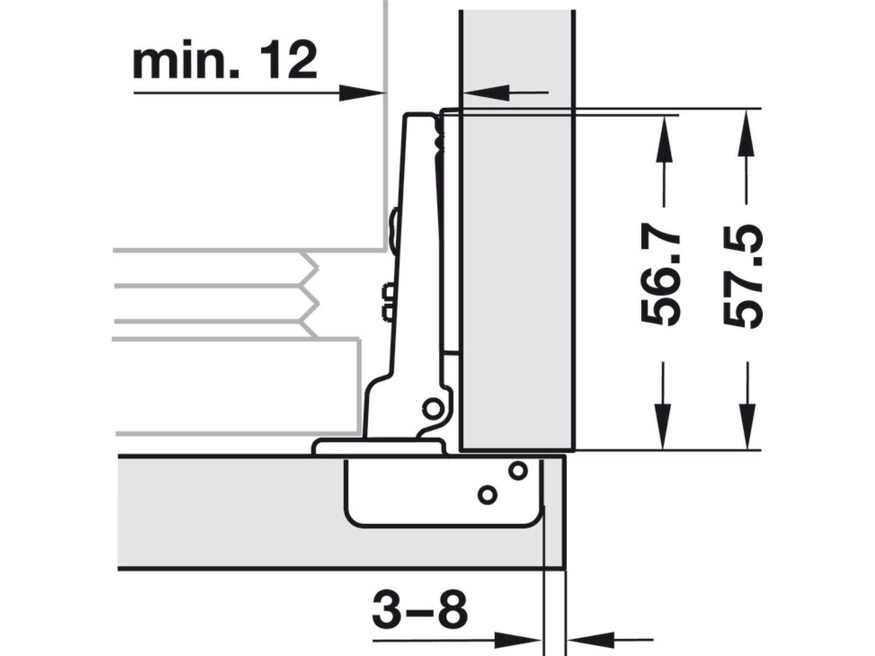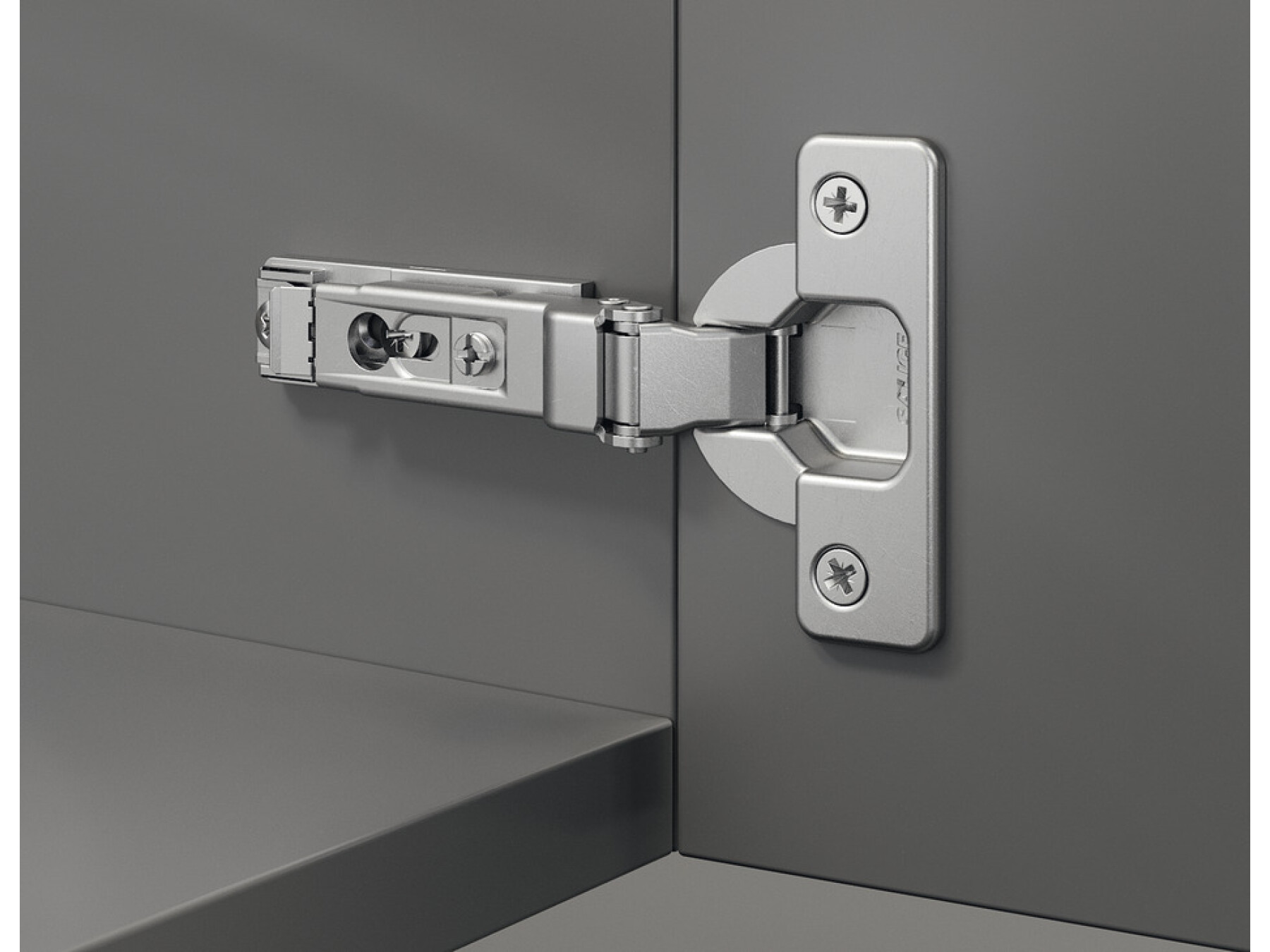 Door to cabinet with slide-on system using Duomatic A mounting plates