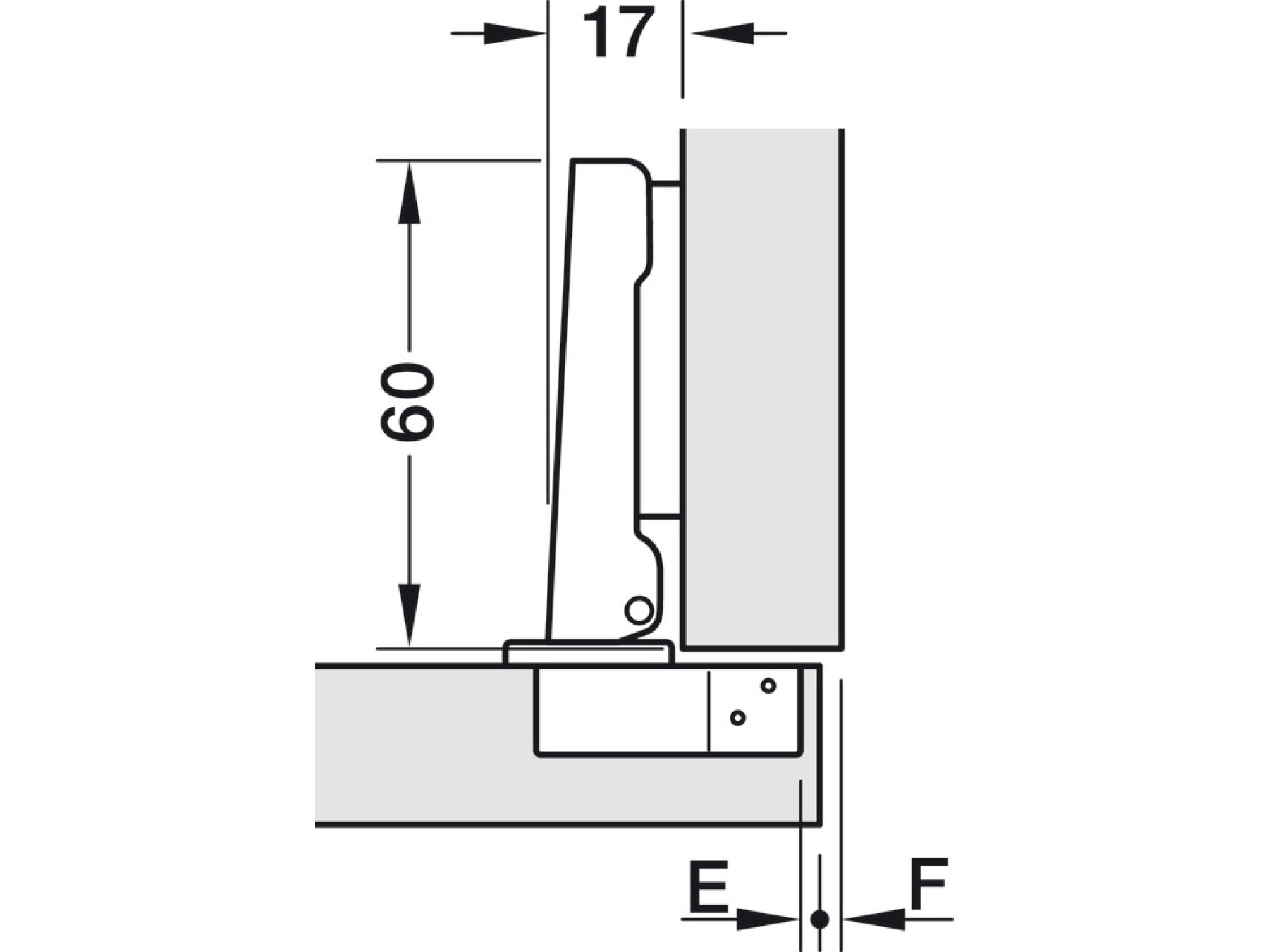 | Door thickness mm | Distance to cup E mm | ||||