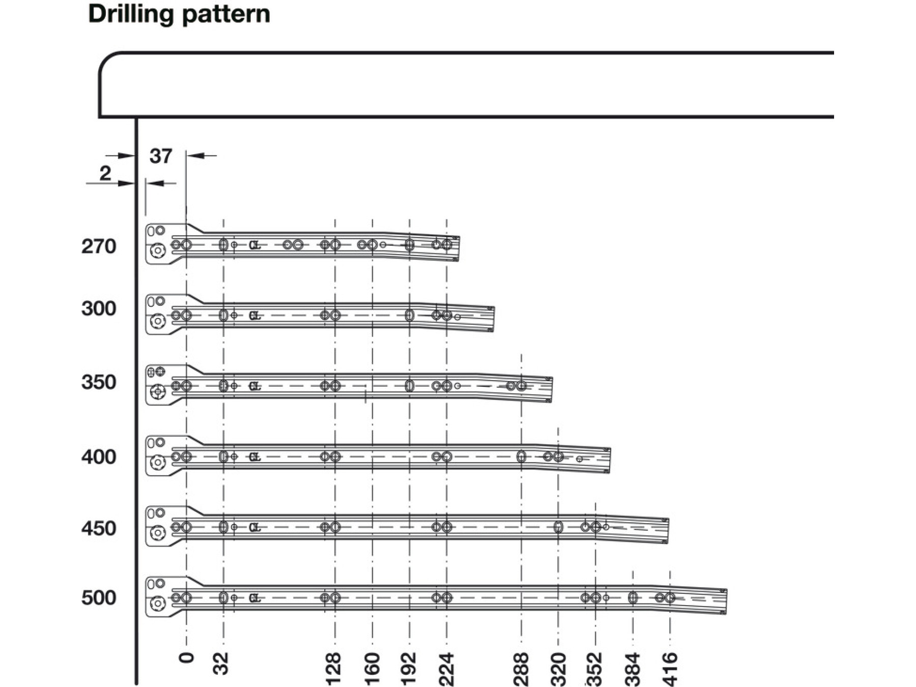 For screw fixing to side panel into 32 mm series drilled holes