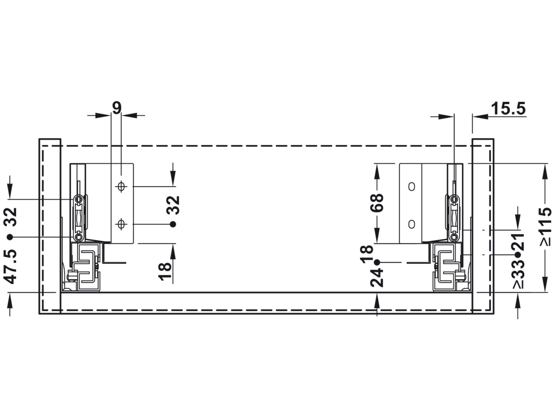 1 pair thin-walled drawer sides with rear panel fitting