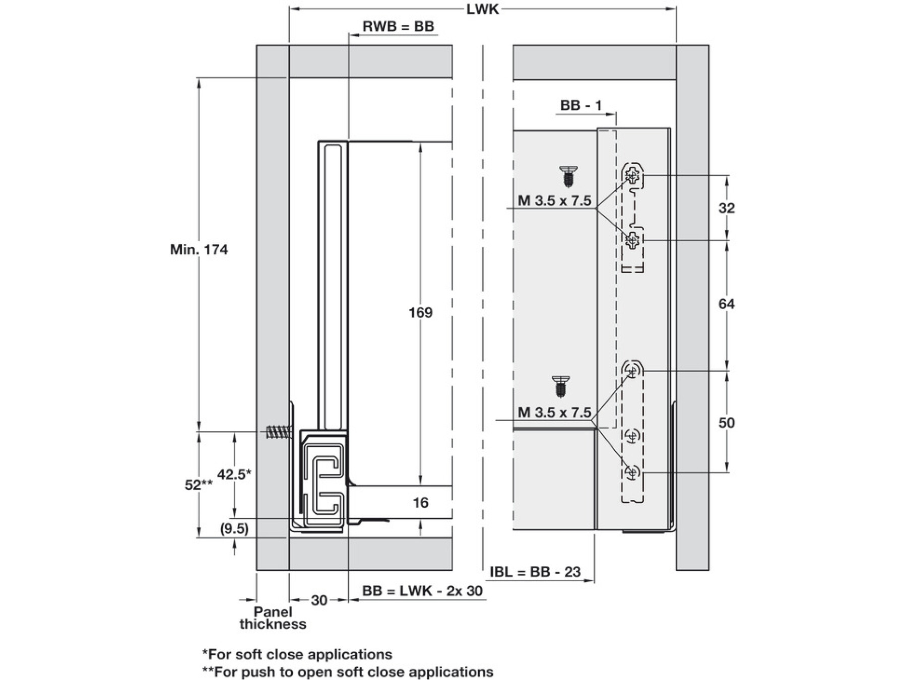 For glass front panels for Grass Nova Pro Scala 186 mm height sides and Crystal Plus sides