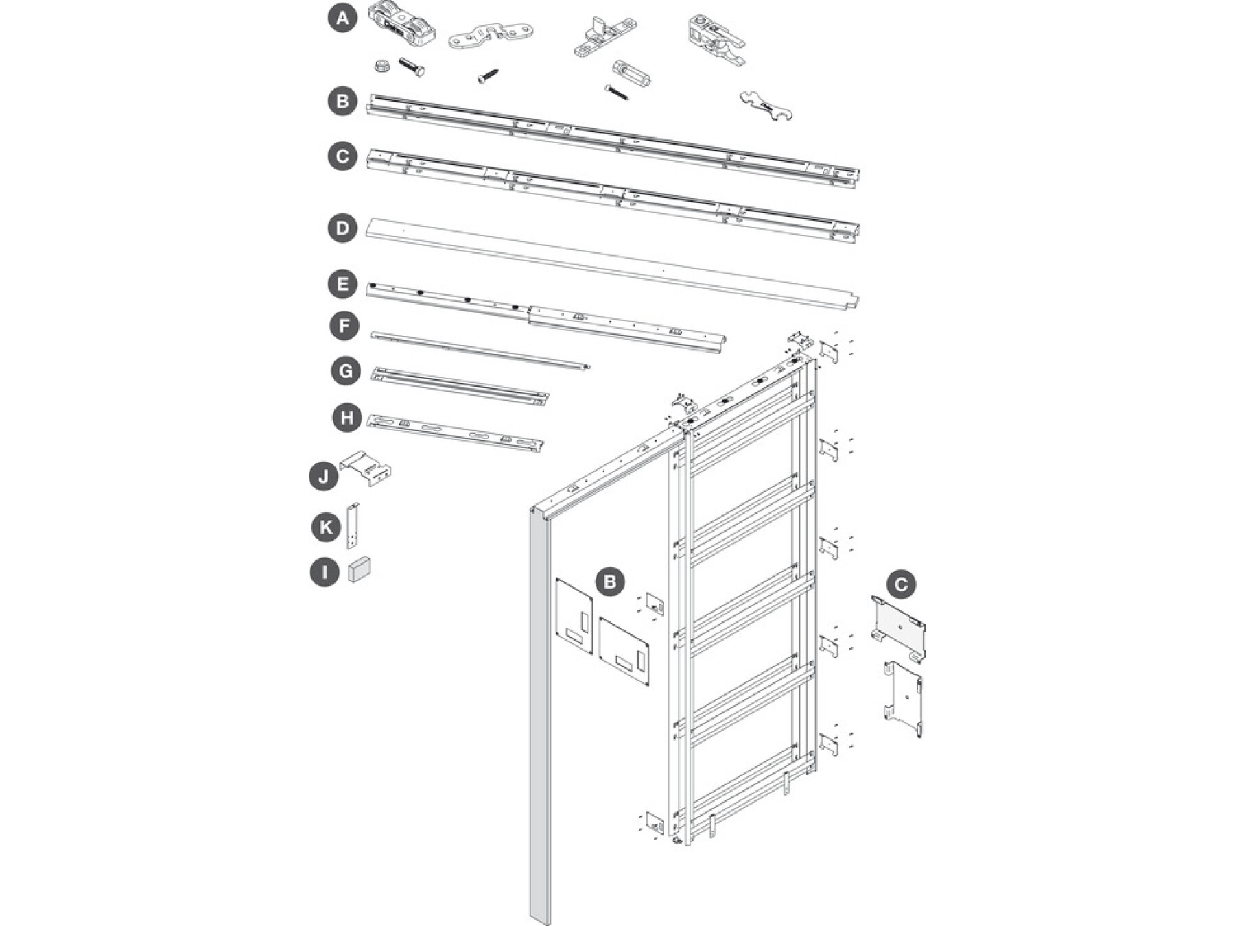 Additional items to order separately, as required; Jamb kits (architraves), Soft close mechanism, self closing set, accessories set