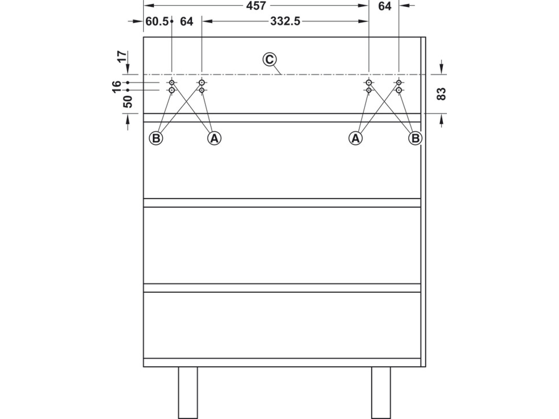 For kitchen and living room furniture, can be installed in place of a drawer to provide a uniform front design
