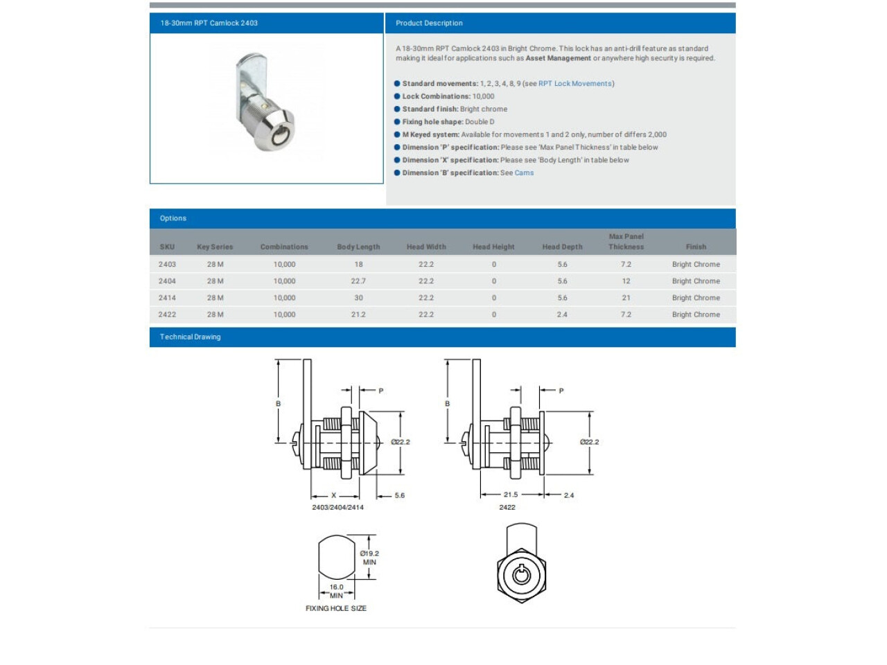 Built around Product Part No: 2422, this lock is ideal for customers seeking a practical, high-performance solution within the Furniture Fittings, Living & Commercial Solutions category. As part of the broader Locks, Catches & Bolts range, the RADIAL PIN TUMBLER LOCK 2422 KEYED ALIKE offers a reliable locking system for cabinets and storage units—perfect for retail counters, offices, workshops, and home furniture.