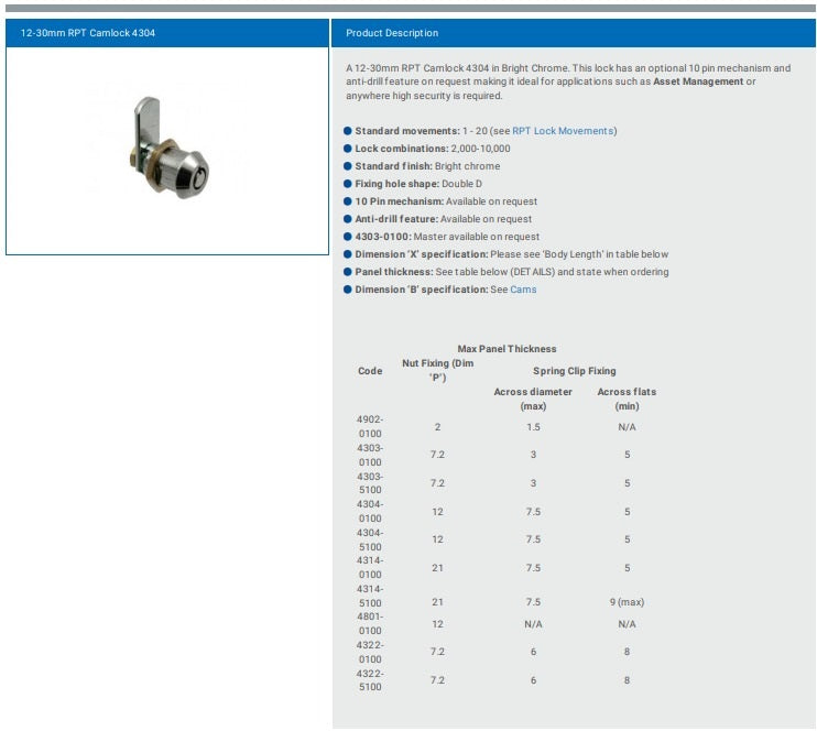 The 4322 radial pin tumbler cam lock has a 21 mm body length and flat round head.
