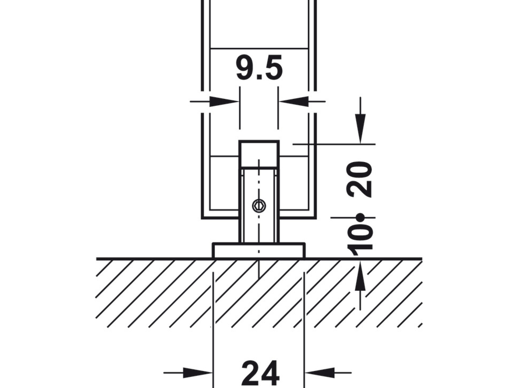 1x Bottom guide, 24 x 60 x 30 mm, black plastic