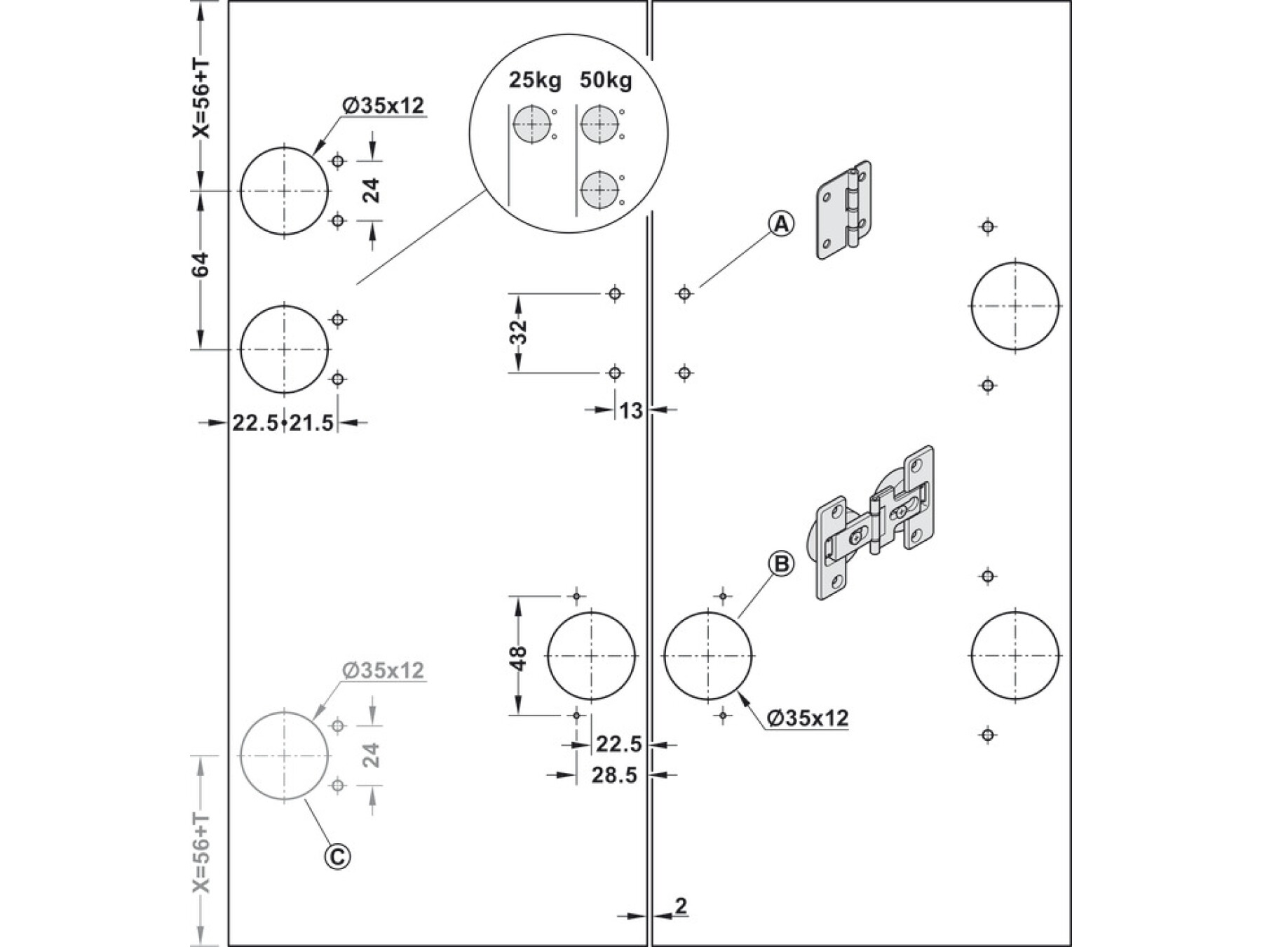 12.5/25 kg (25/50 kg per pair of doors)