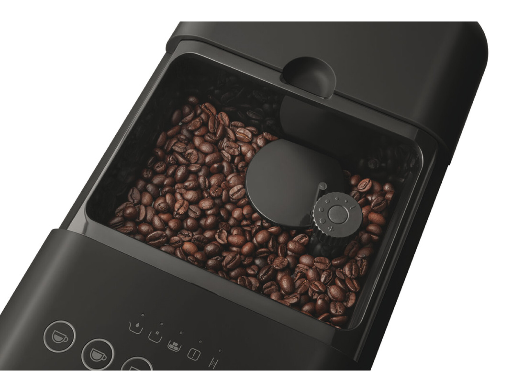 Alarms for decalcification, coffee grounds container full, no coffee, empty water tank, brewing group missing or not correctly inserted