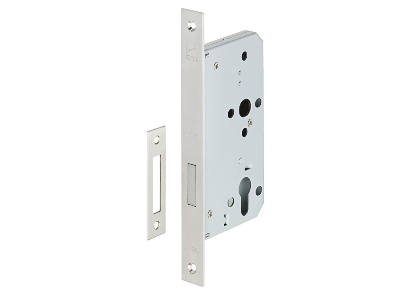 Backset 55 mm, case size 84 mm, radius forend, stainless steel