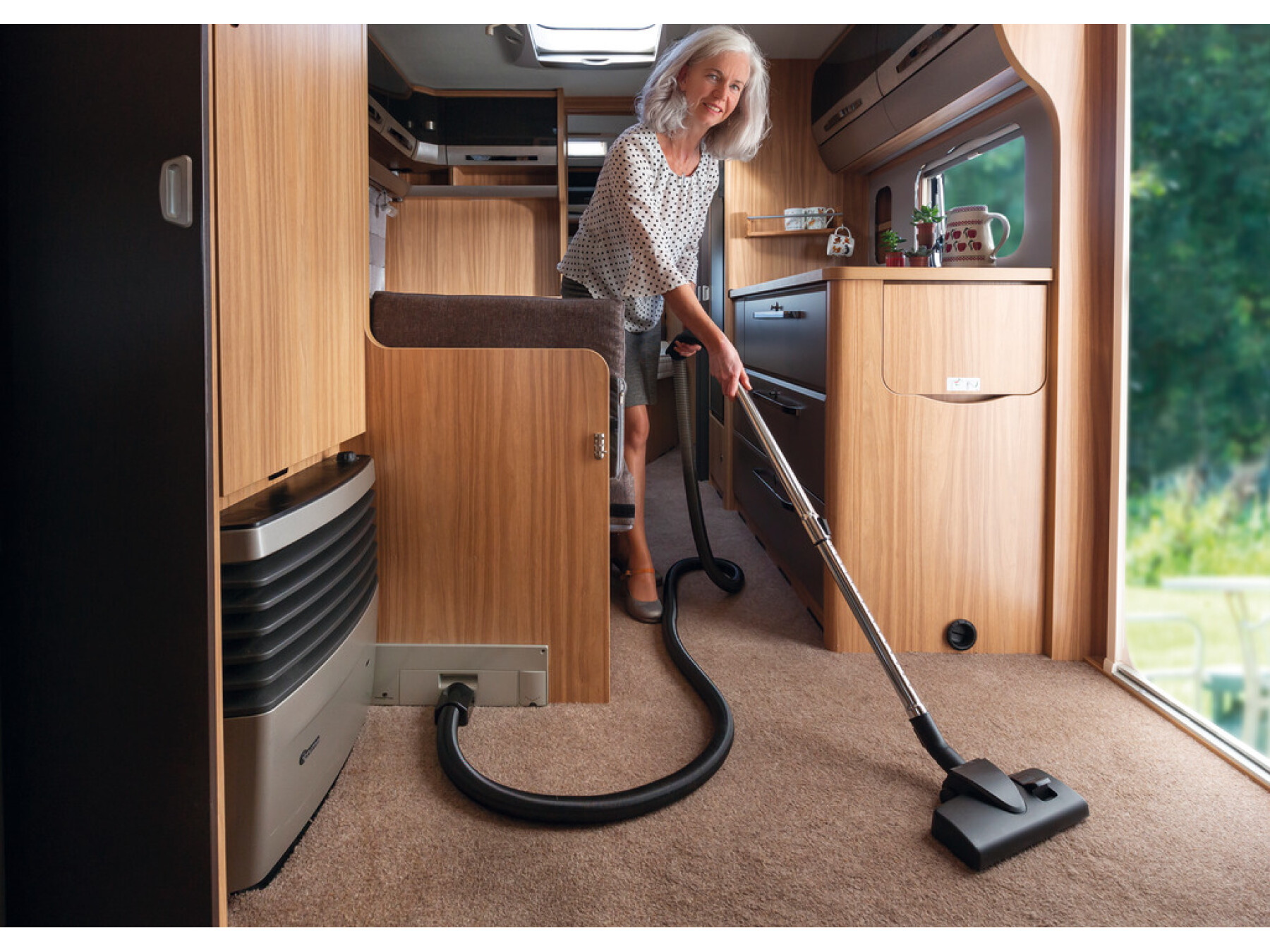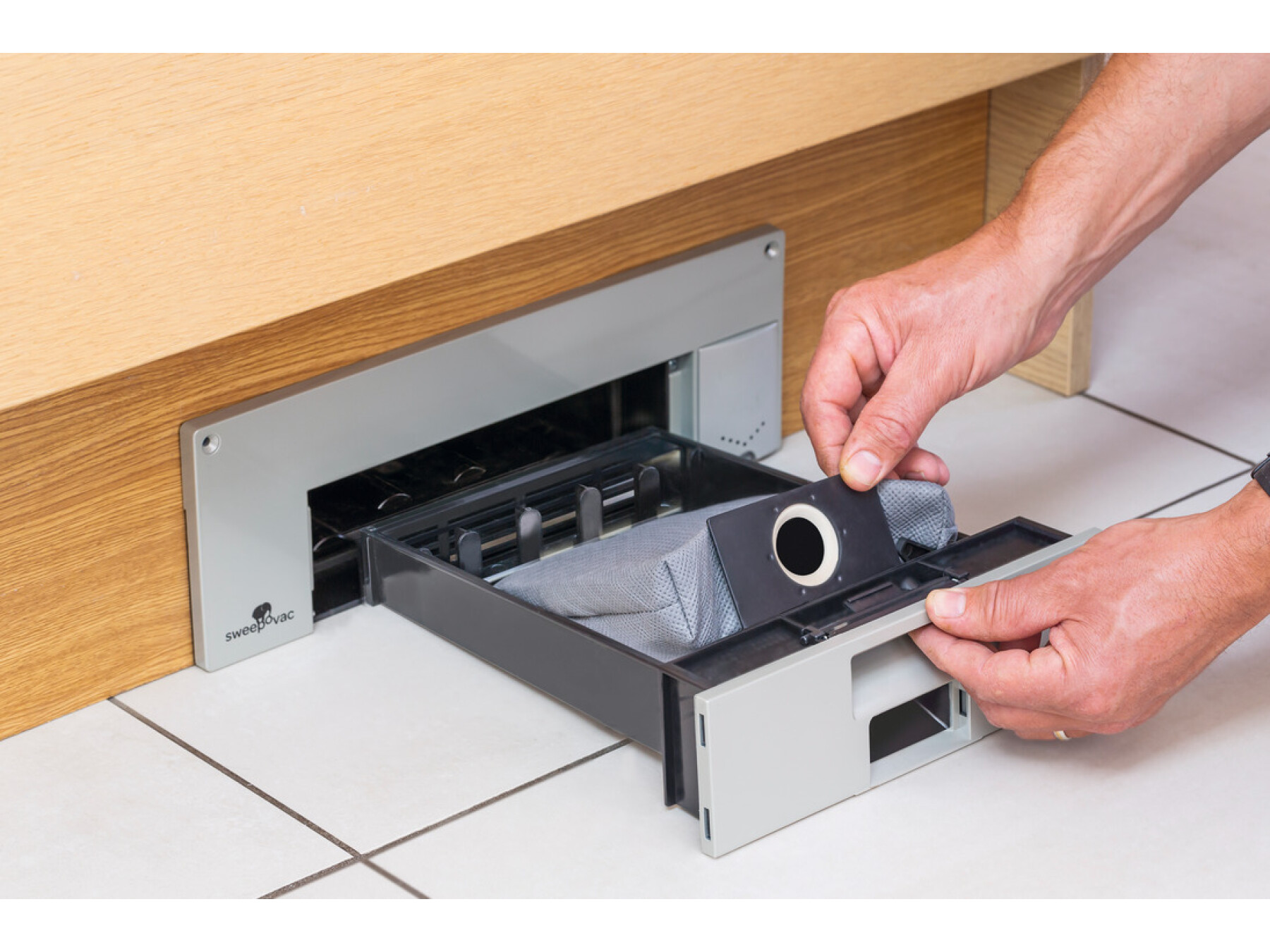 Kick switch with the broom or foot and the dirt that is brushed up in front of the kitchen vacuum for plinths is sucked in immediately. The new extending hose also allows vacuuming drawers and can therefore replace the vacuum cleaner in small living spaces