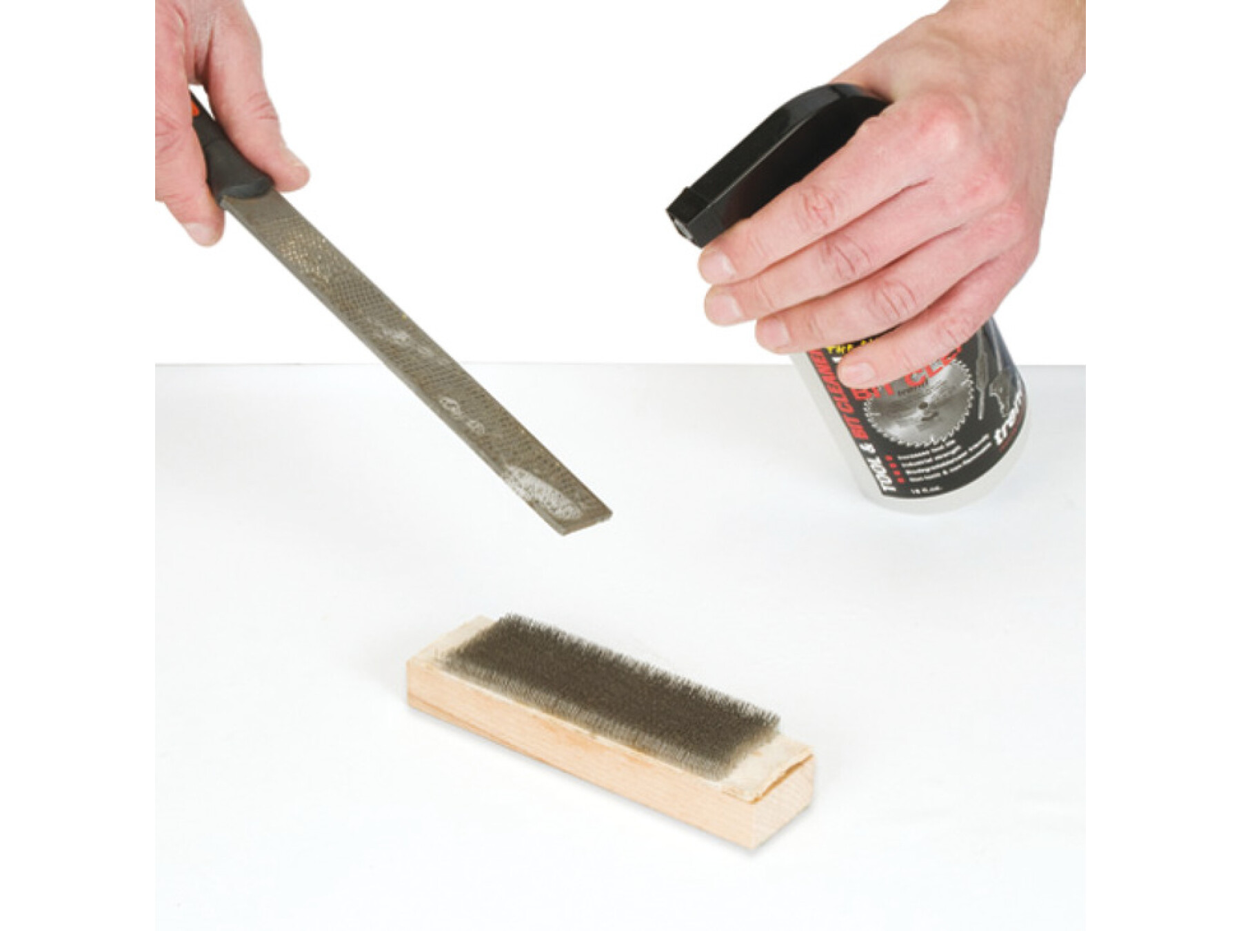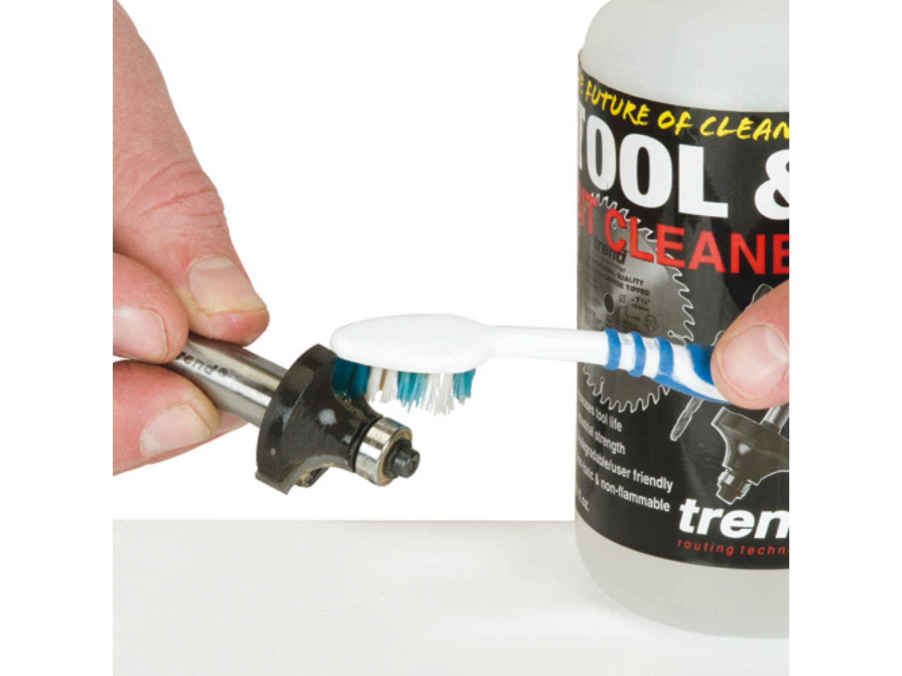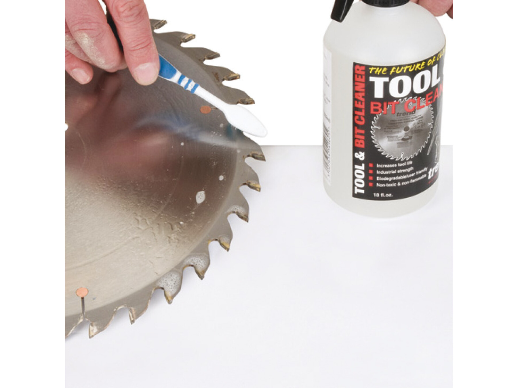 An industrial grade tool and bit cleaner to remove pitch and resin build-up from sawblades, router cutters, planer blades and drill bits etc