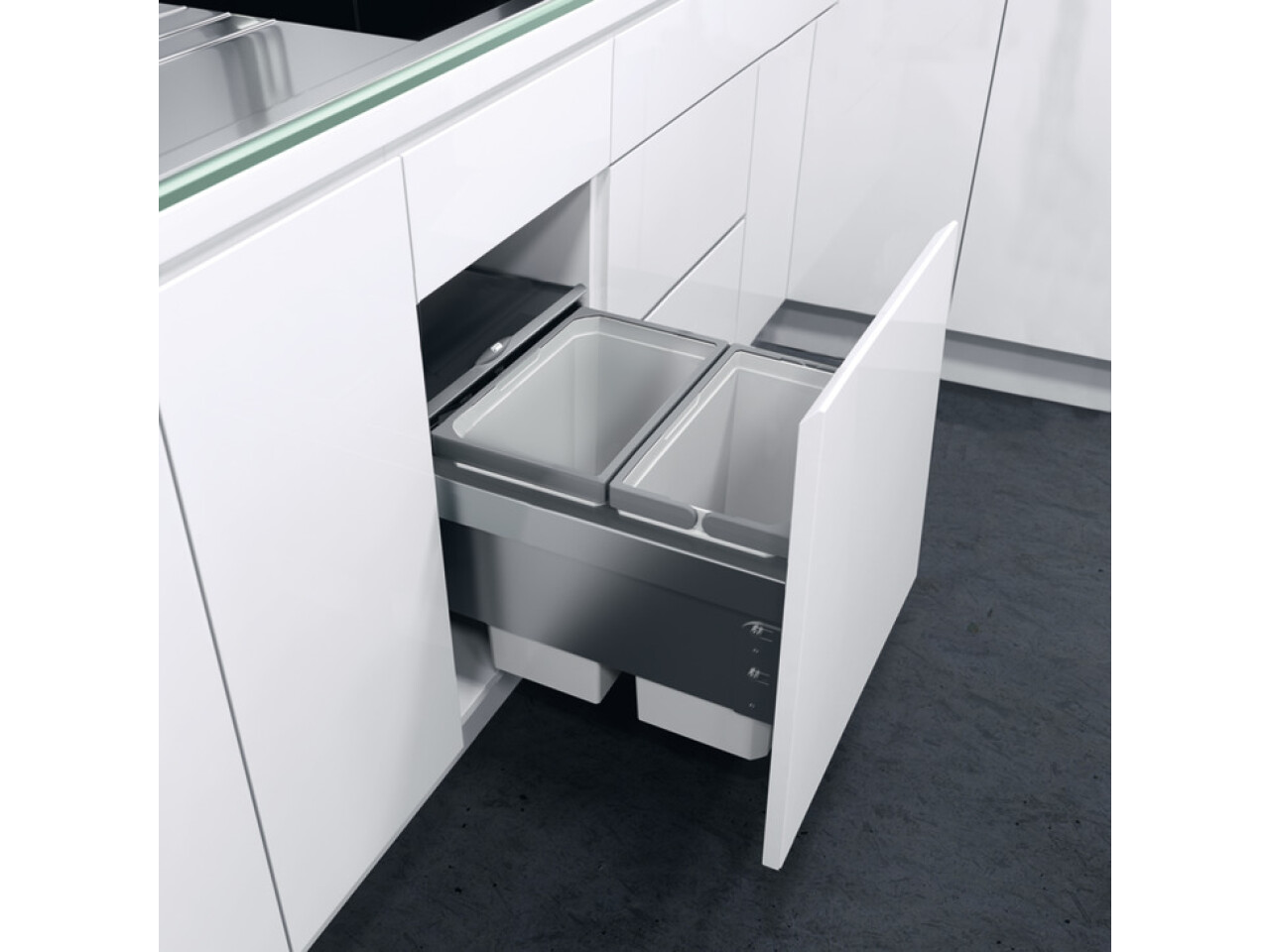 System includes its own runners for side fixing to cabinets and door front